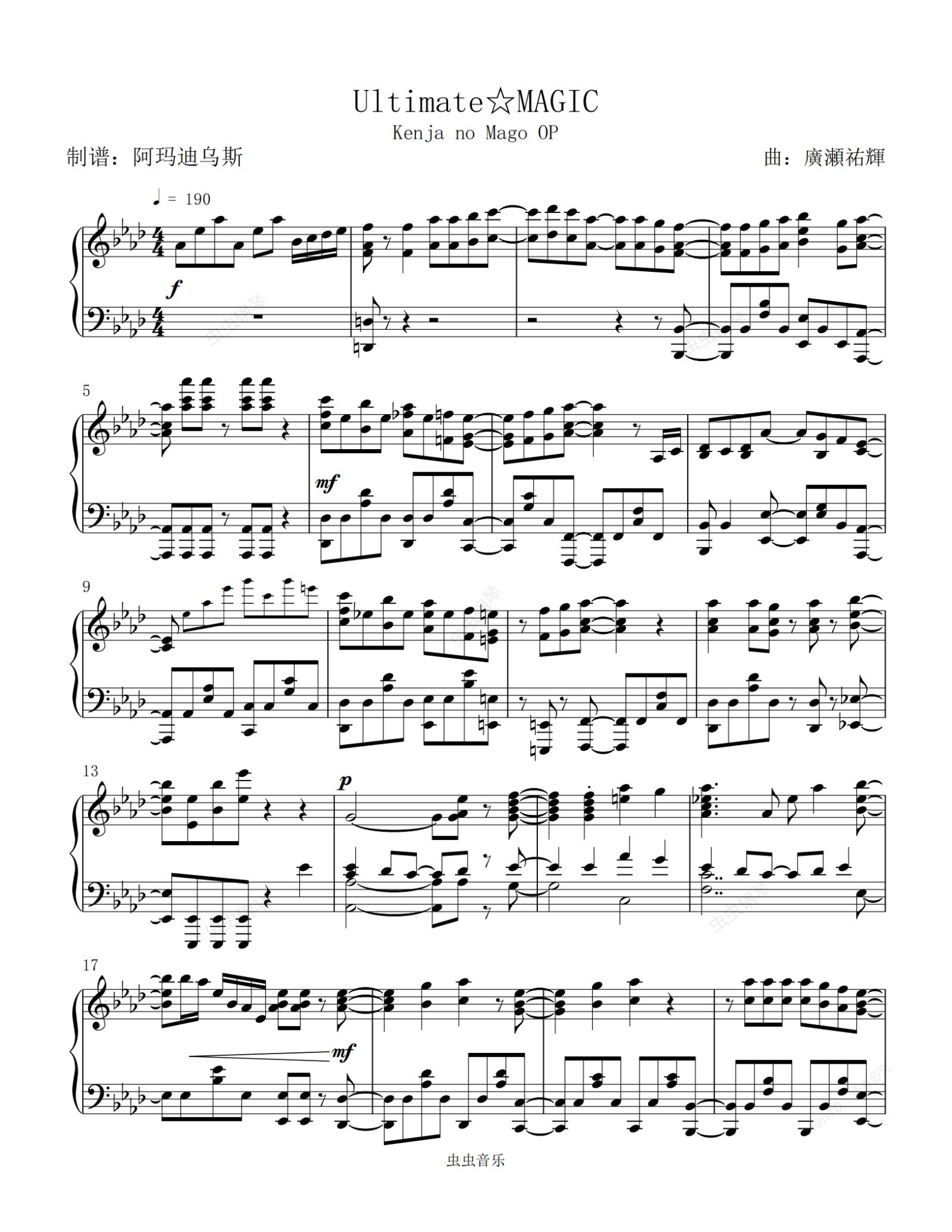 钢琴谱:贤者之孙 OP < アルティメット☆MAGIC > (终极☆魔法) 原调高还原完整版本