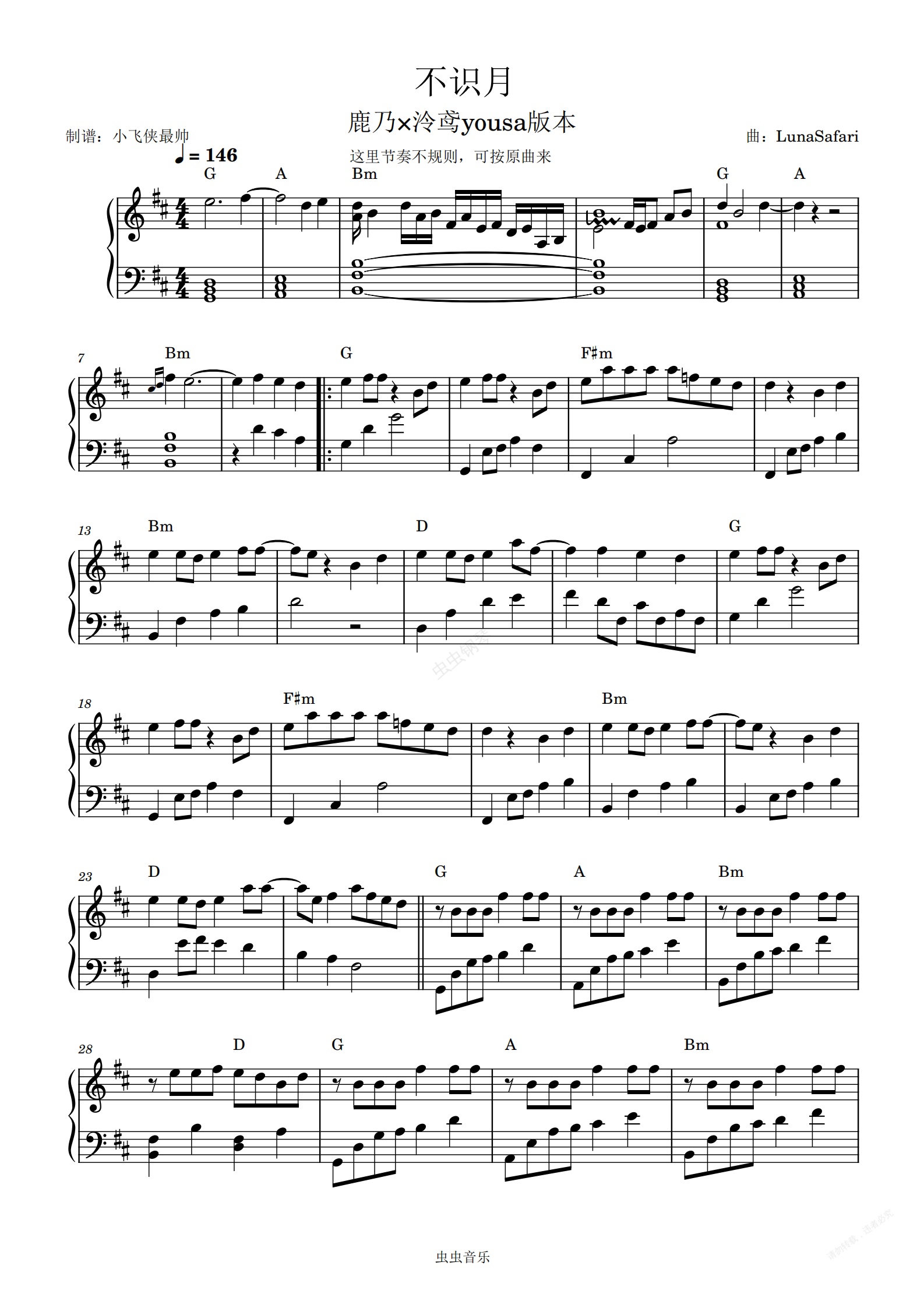 钢琴谱:不识月(鹿乃×泠鸢yousa版本)