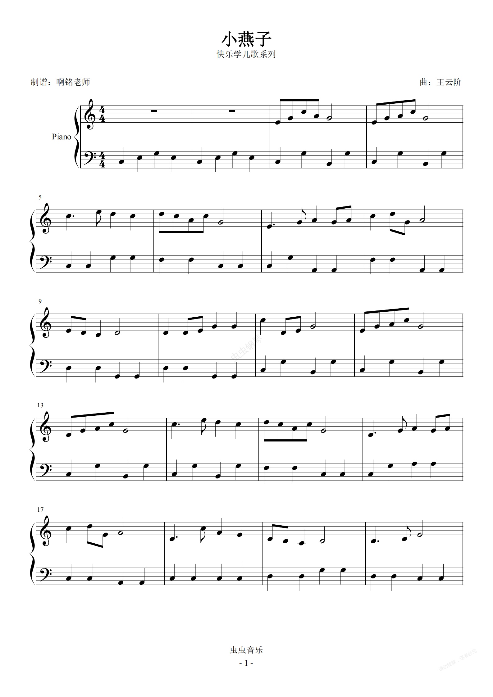 钢琴谱:小燕子 小汤3 快乐学儿歌
