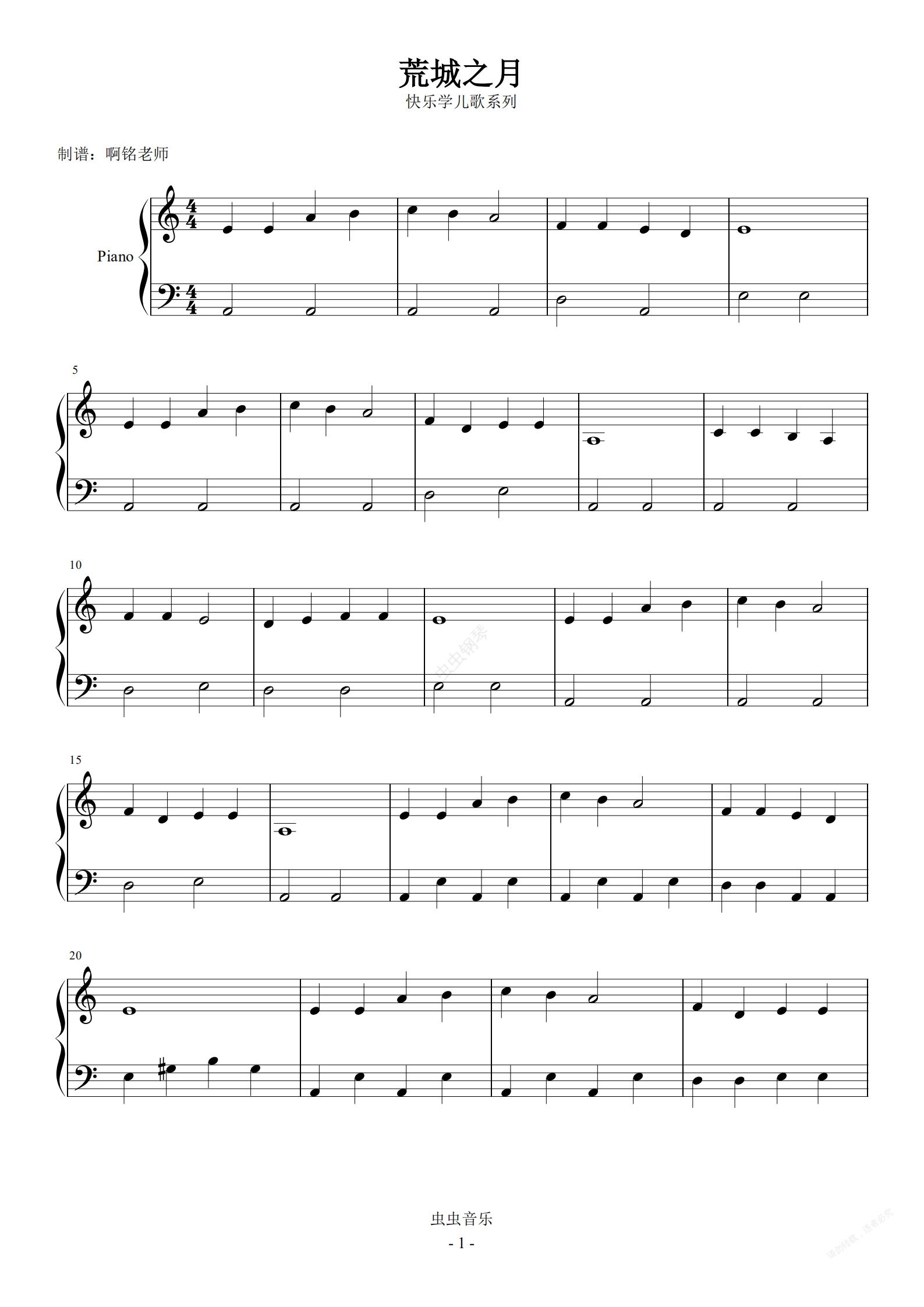 钢琴谱:荒城之月 小汤3 快乐学儿歌