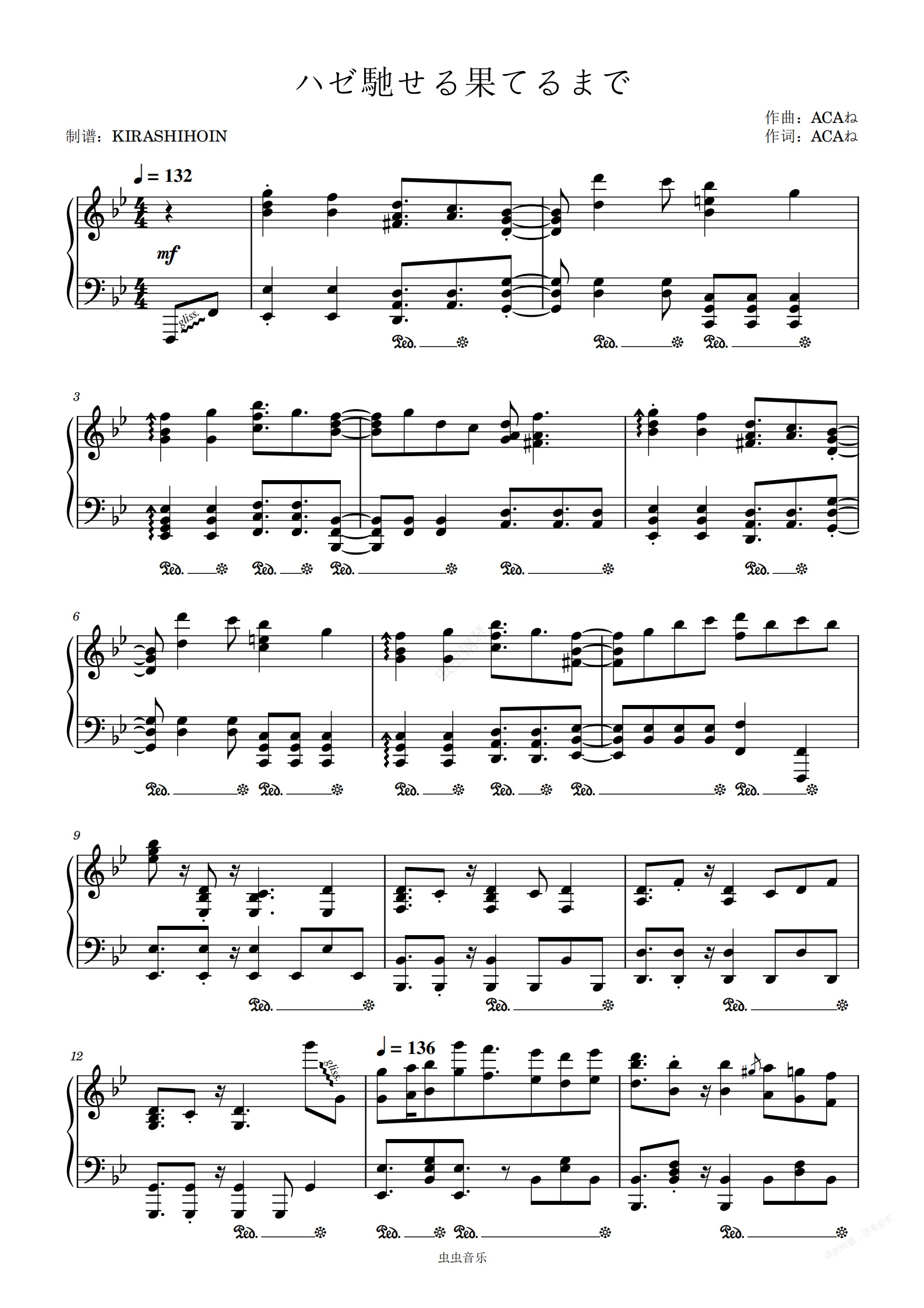 钢琴谱:ハゼ馳せる果てるまで