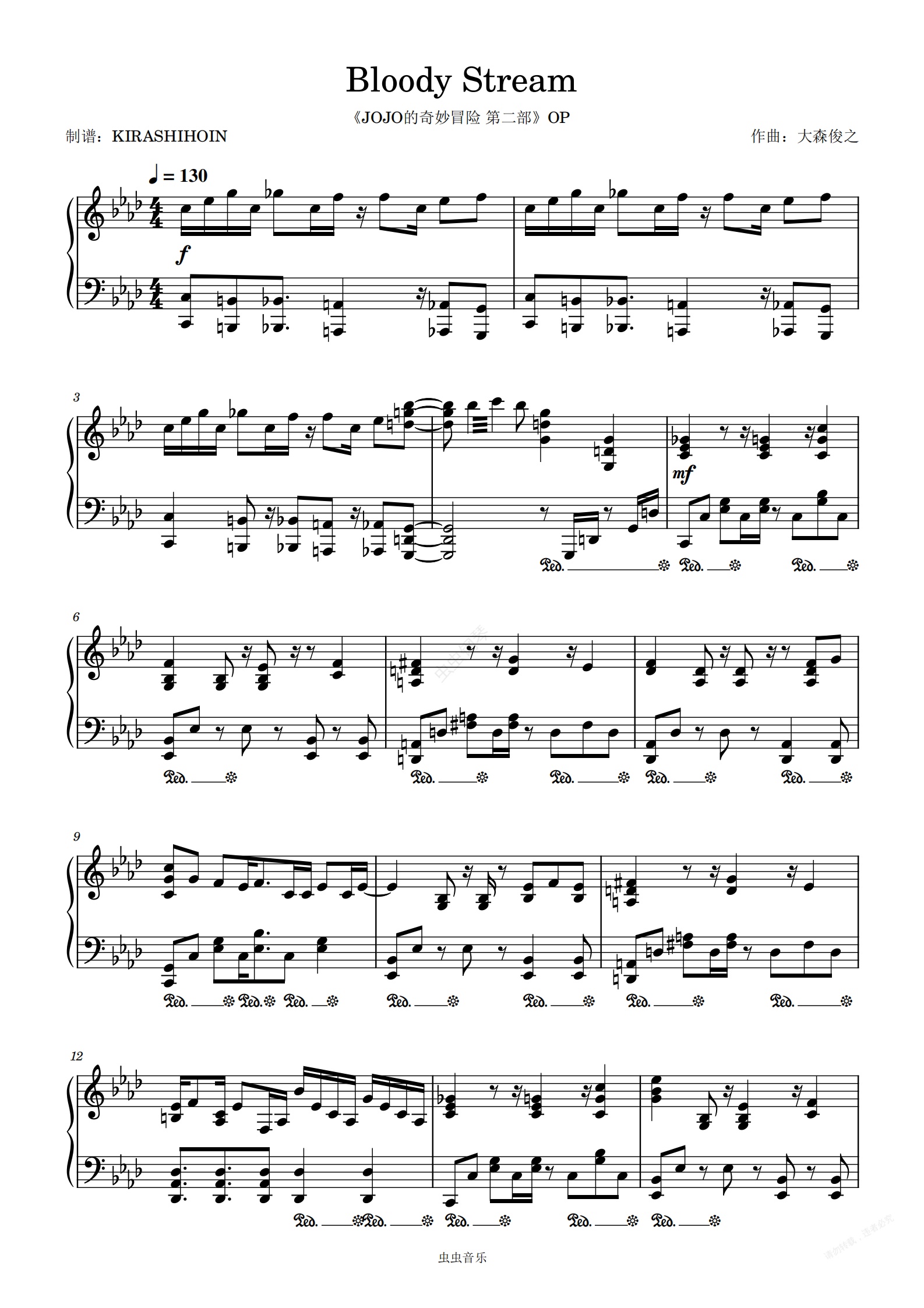 钢琴谱:Bloody Stream(《JOJO的奇妙冒险 第二部》OP)