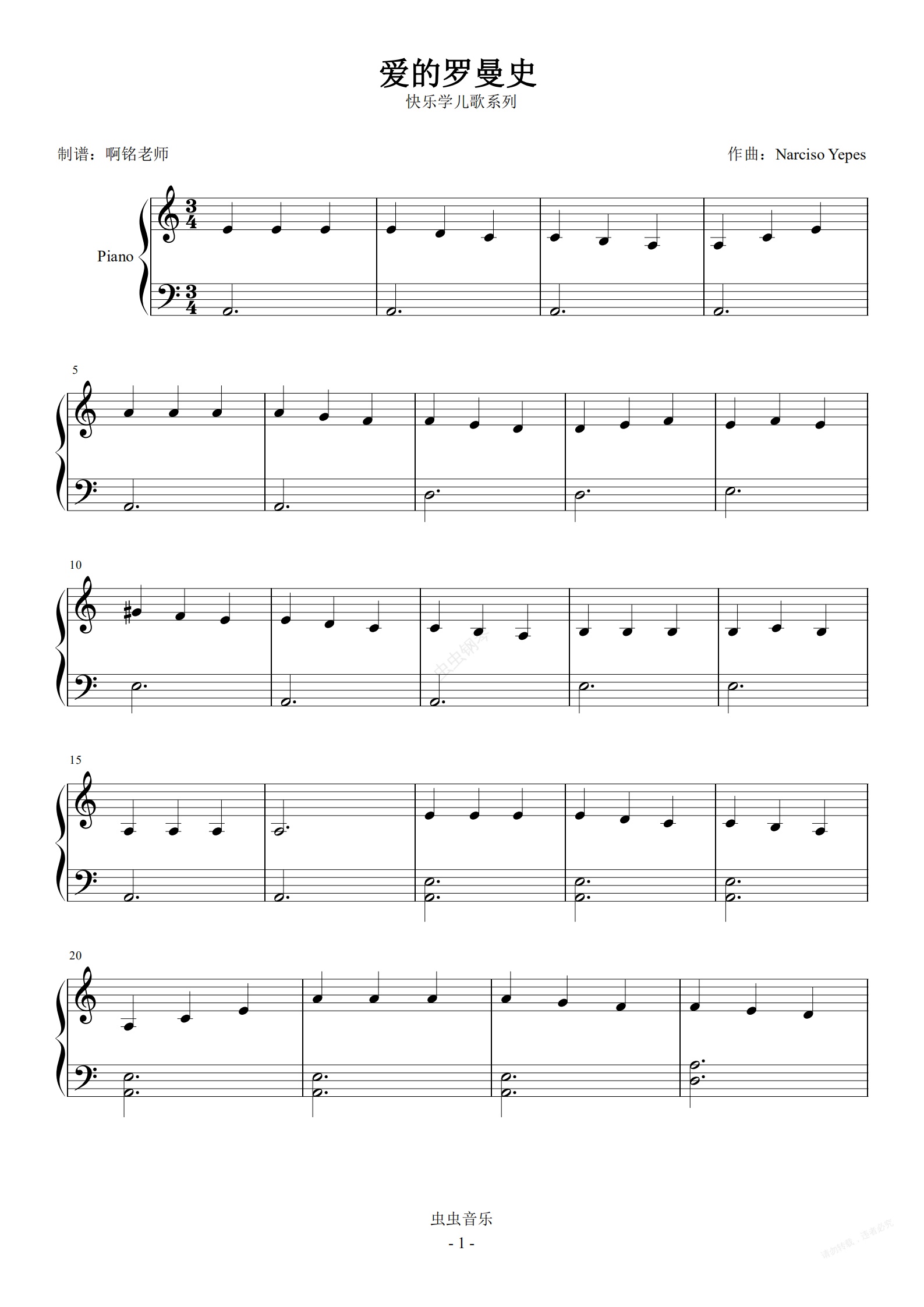 钢琴谱:爱的罗曼史 小汤2 快乐学儿歌