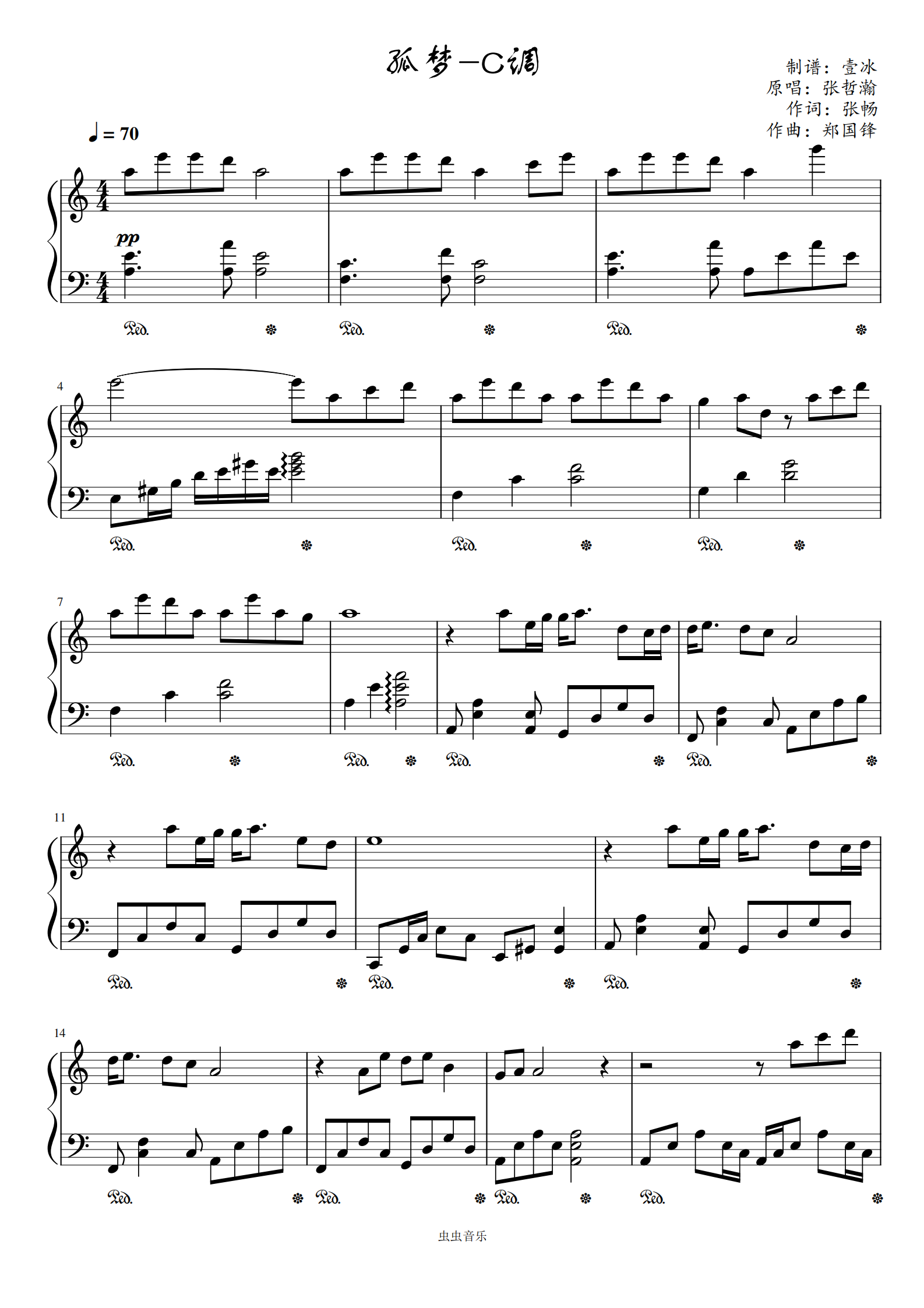 钢琴谱:孤梦//山河令插曲-C调简单易上手