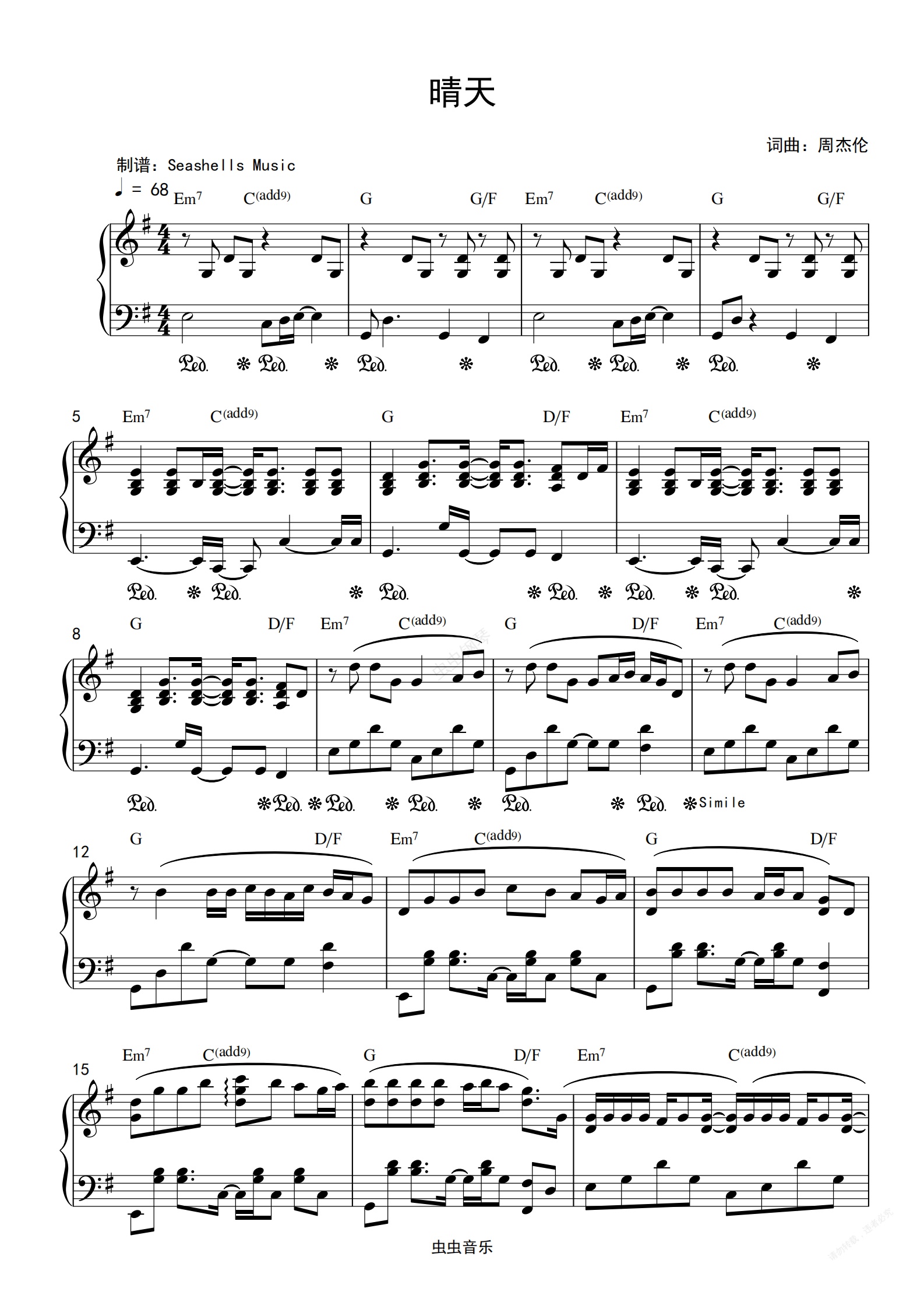 钢琴谱:周杰伦-《晴天》精编钢琴独奏