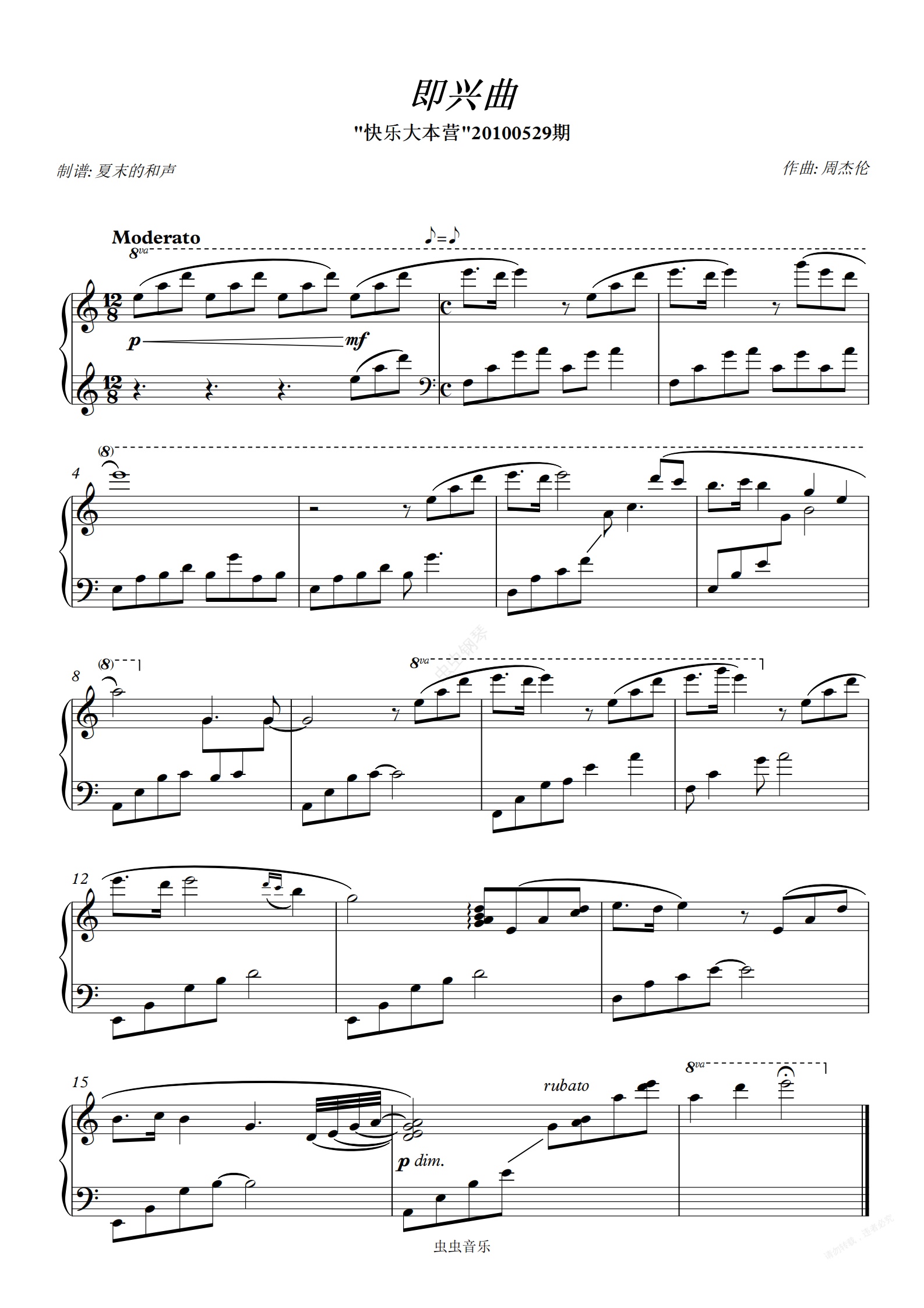钢琴谱:周杰伦 - 即兴曲 - 快乐大本营