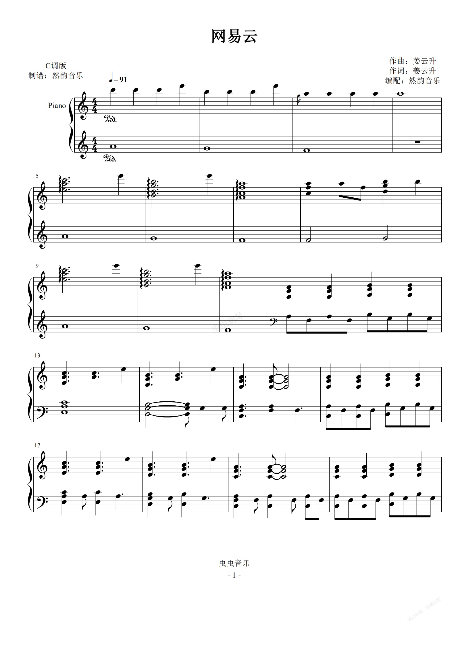 钢琴谱:【C调】网易云-姜云升 钢琴史诗级还原