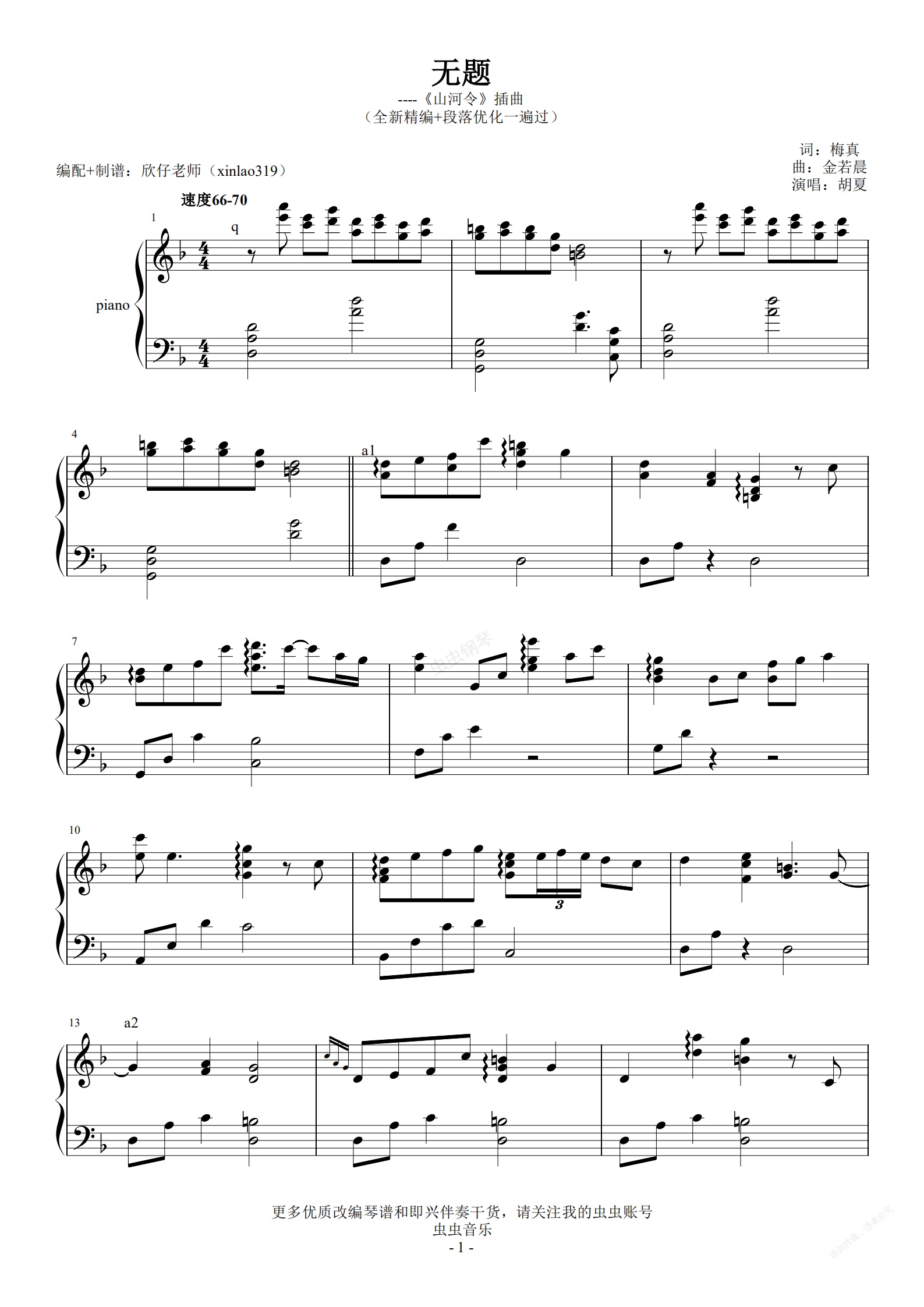 钢琴谱:胡夏-F《无题》(《山河令》插曲-精编段落优化版)