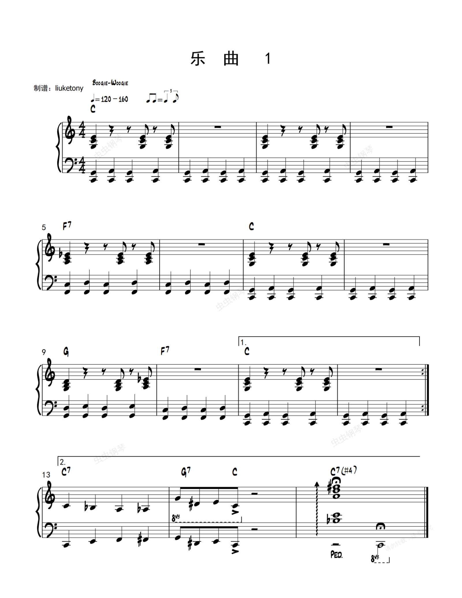 钢琴谱:中国音乐学院爵士钢琴考级(乐曲1)