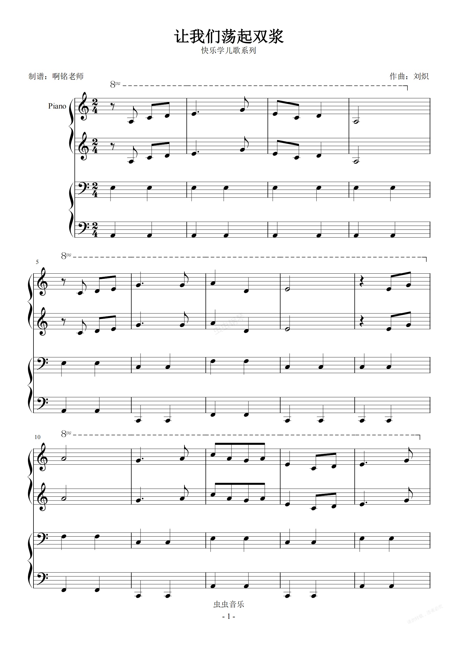钢琴谱:让我们荡起双桨 小汤3 四手联弹