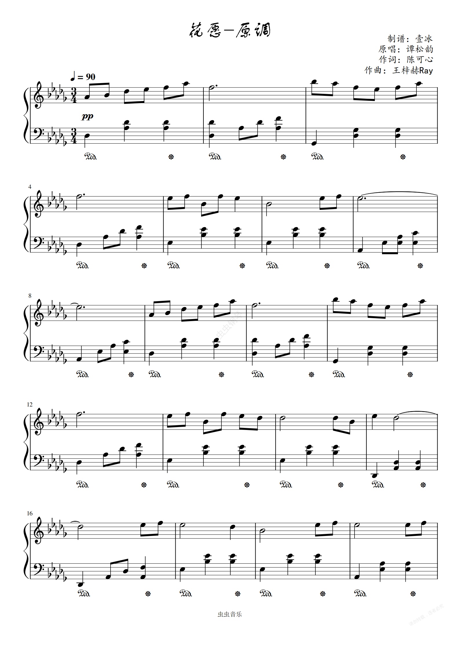 钢琴谱:花愿//《锦心似玉》插曲-原调版