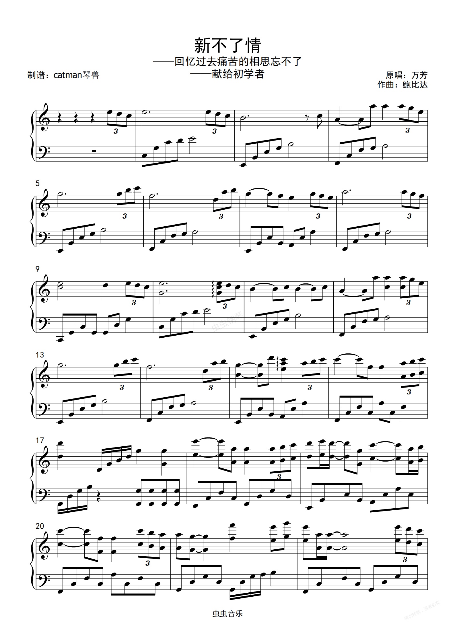 钢琴谱:新不了情-萧敬腾 琴兽C调版