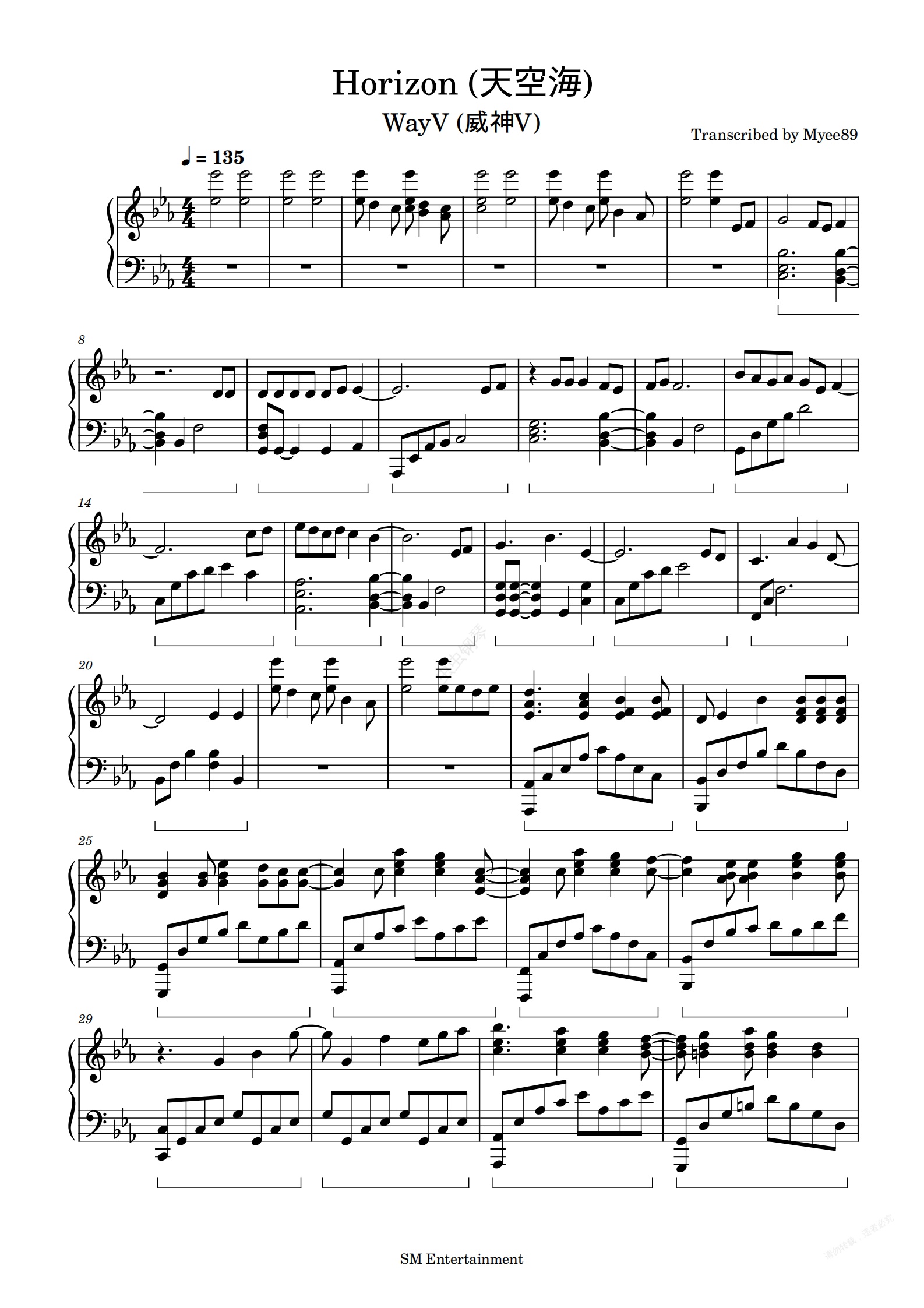 钢琴谱:威神V - 天空海 (Horizon) 钢琴谱
