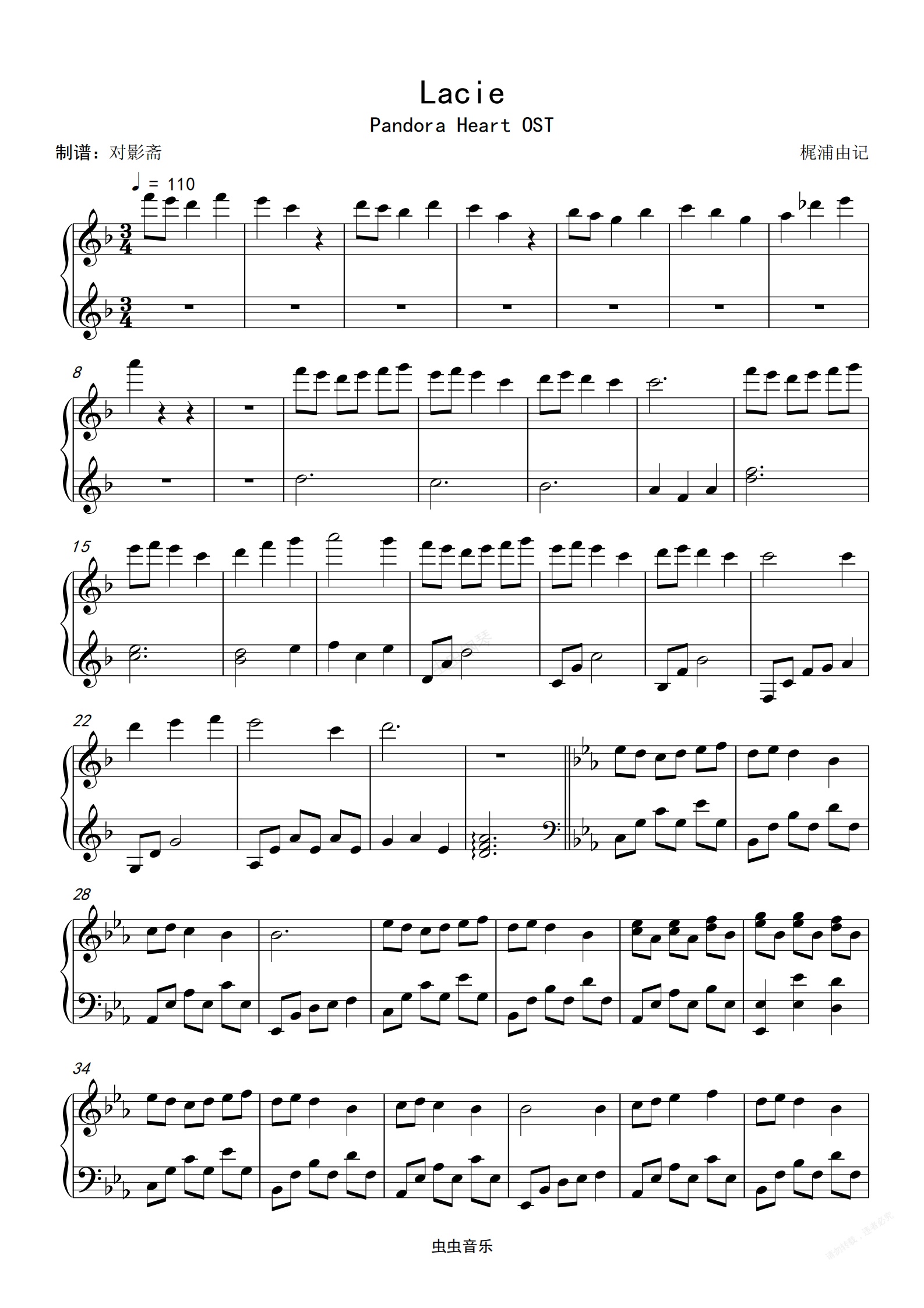 钢琴谱:Lacie(《潘多拉之心》OST)