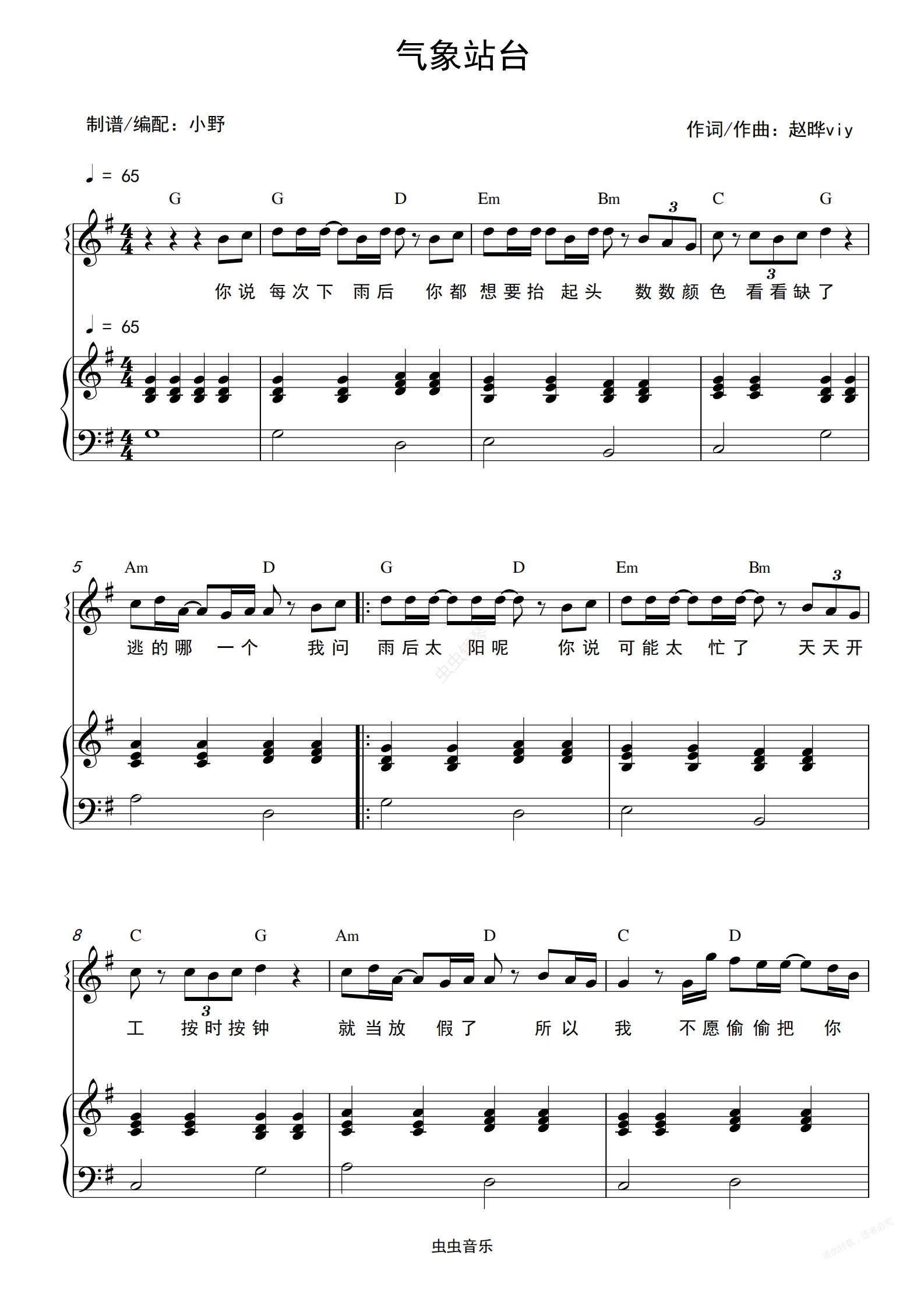 钢琴谱:气象站台(和弦弹唱版)