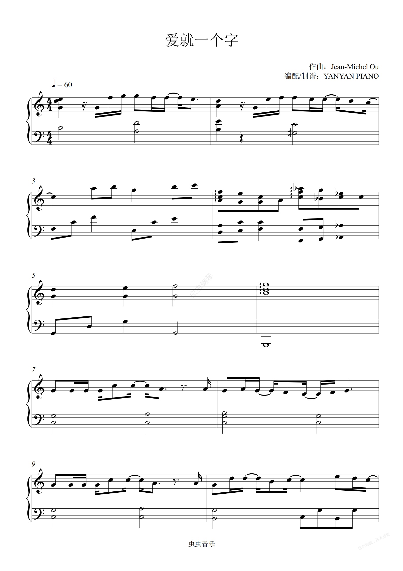 钢琴谱:张信哲【爱就一个字】钢琴独奏C调简版