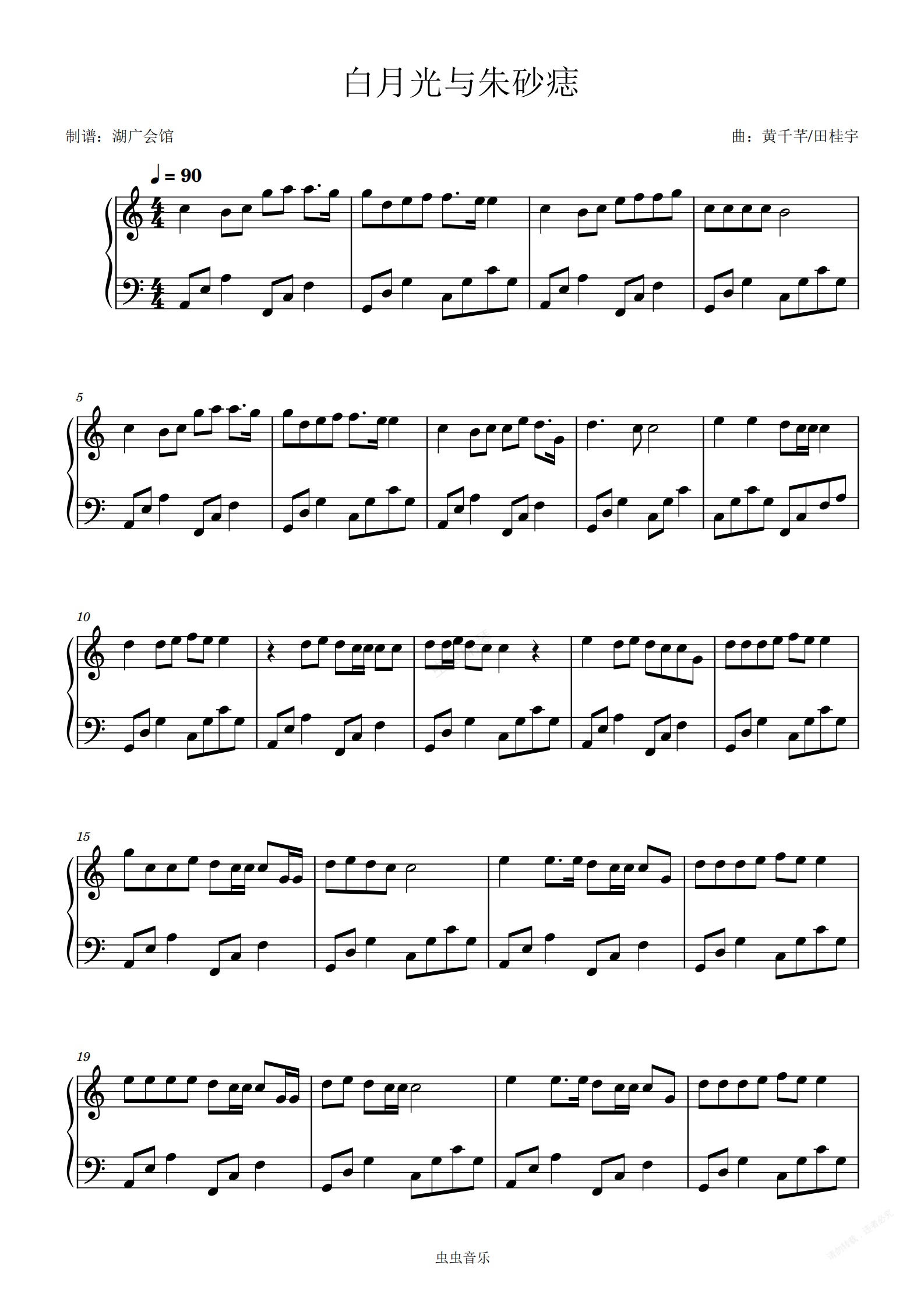 钢琴谱:白月光与朱砂痣 C调钢琴双手简谱 简易版本容易弹