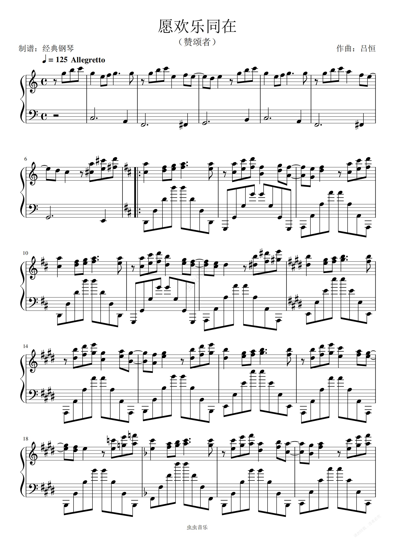 钢琴谱:愿欢乐同在【原谱】