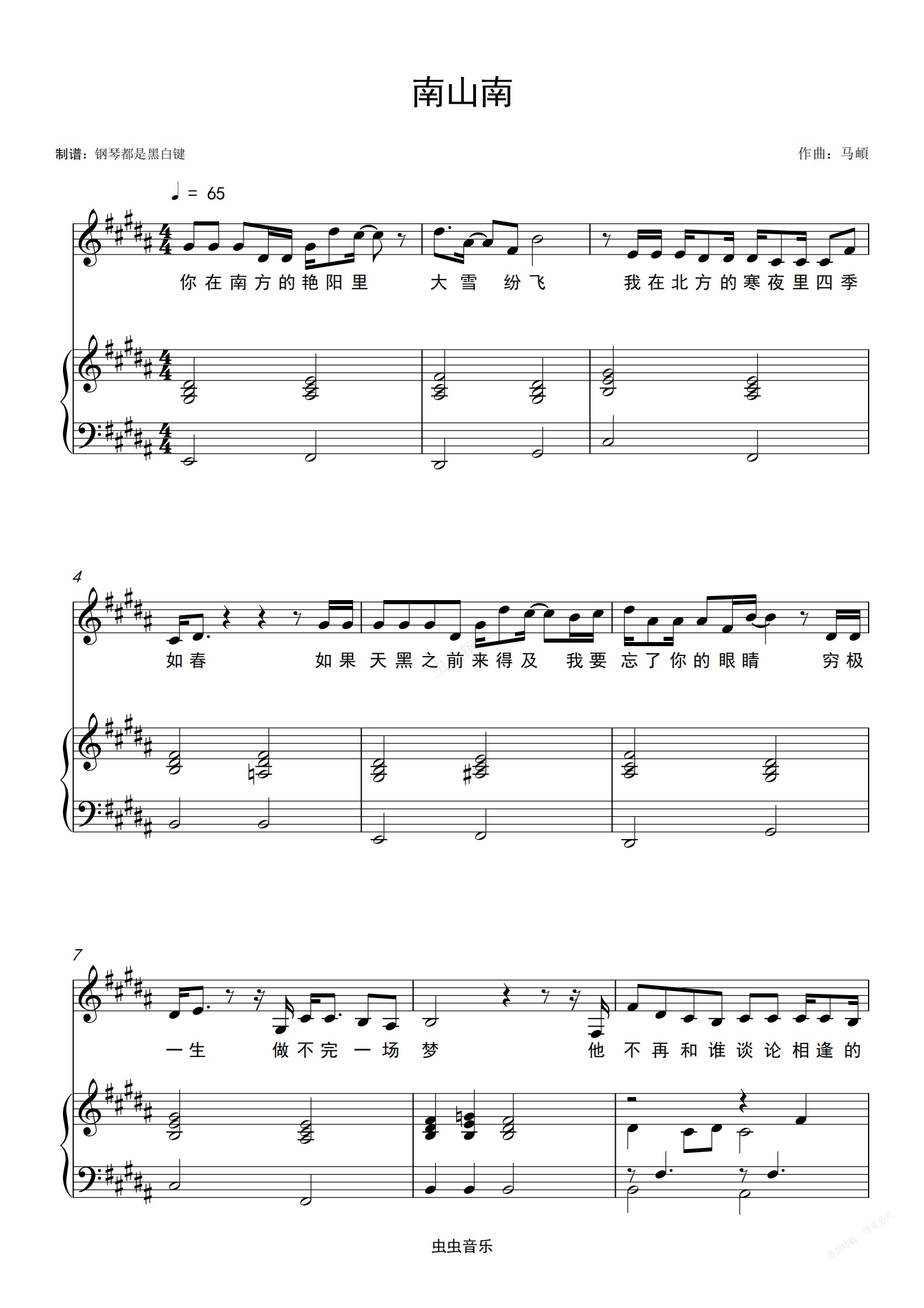 钢琴谱:南山南弹唱版 完美还原原版钢琴百分之99带歌词