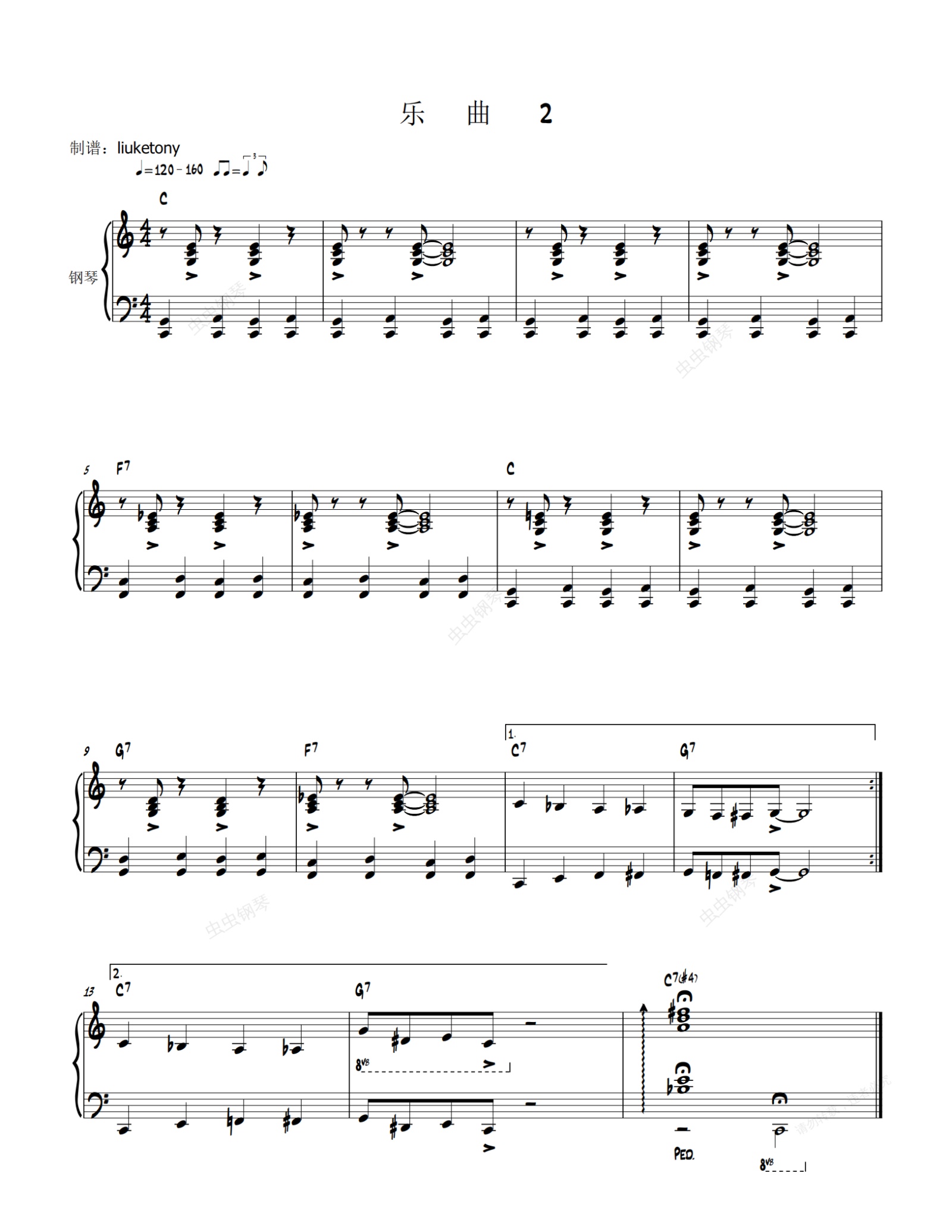 钢琴谱:中国音乐学院爵士钢琴考级 乐曲2