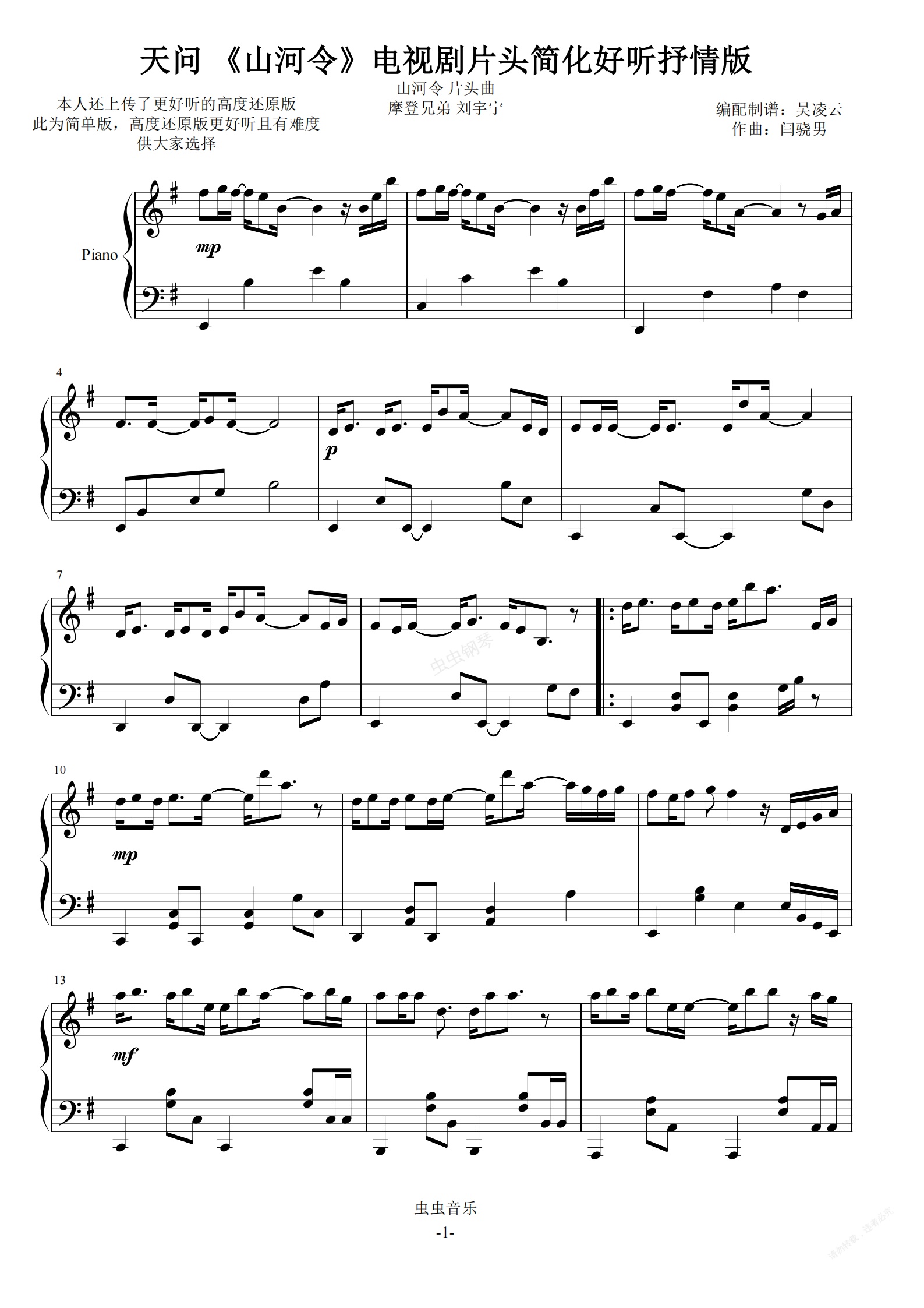 钢琴谱:天问《山河令》电视剧片头简化好听抒情版 摩登兄弟刘宇宁 吴凌云钢琴制作简化版