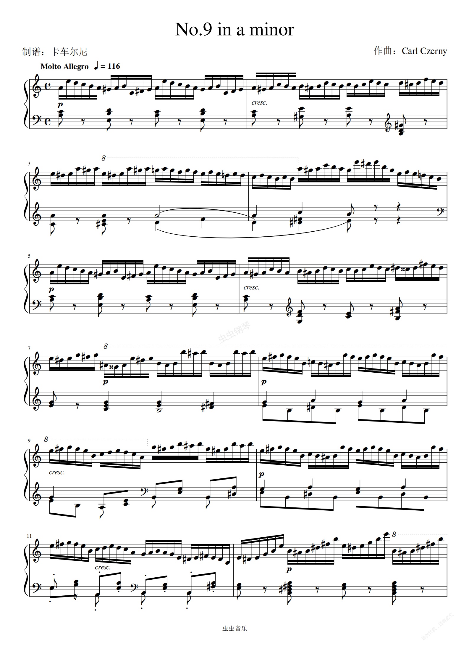 钢琴谱:车尔尼a小调练习曲 作品409第9首 接近740难度