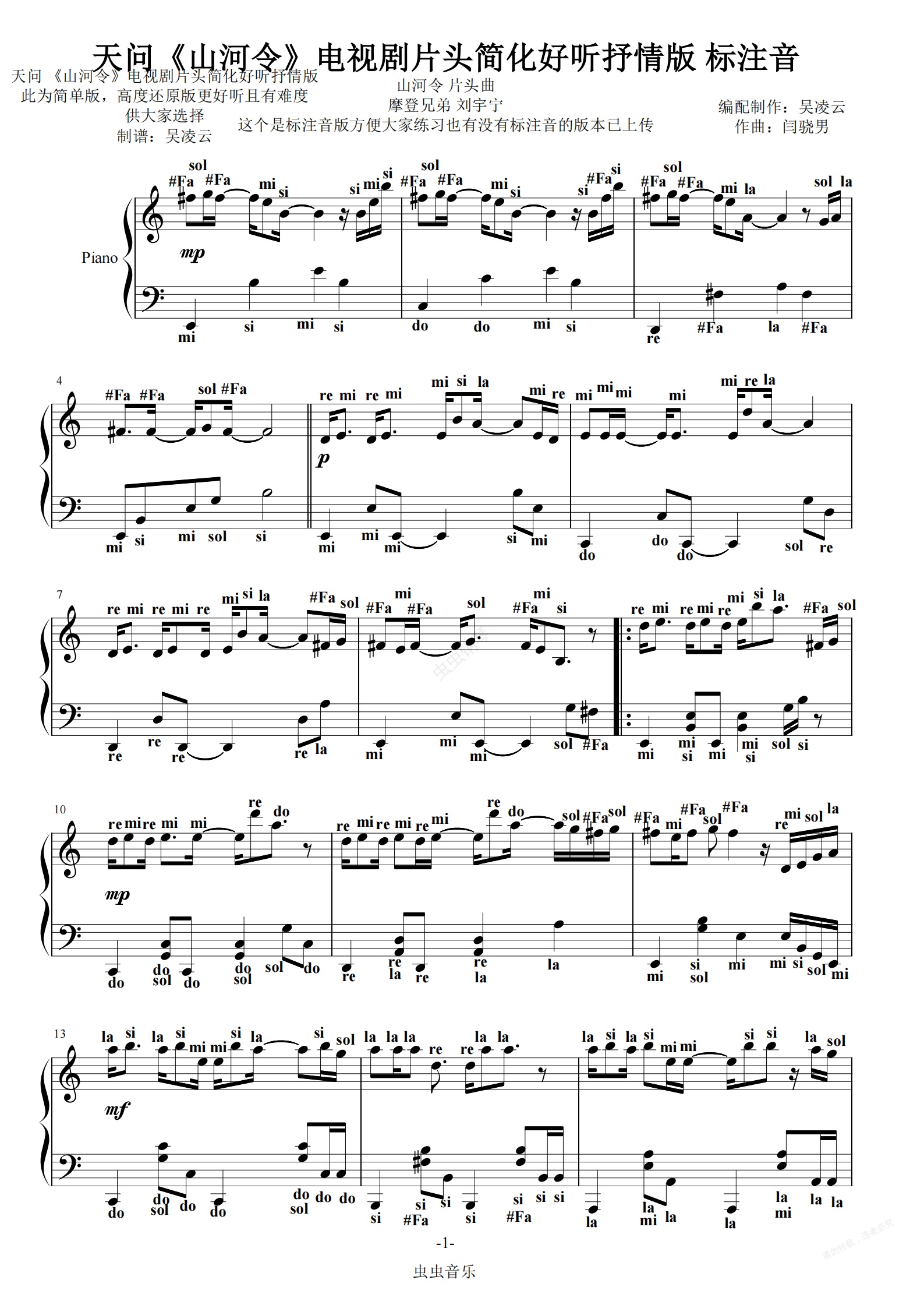 钢琴谱:天问《山河令》电视剧片头简化好听抒情标注音版 摩登兄弟刘宇宁 吴凌云钢琴制作简化版