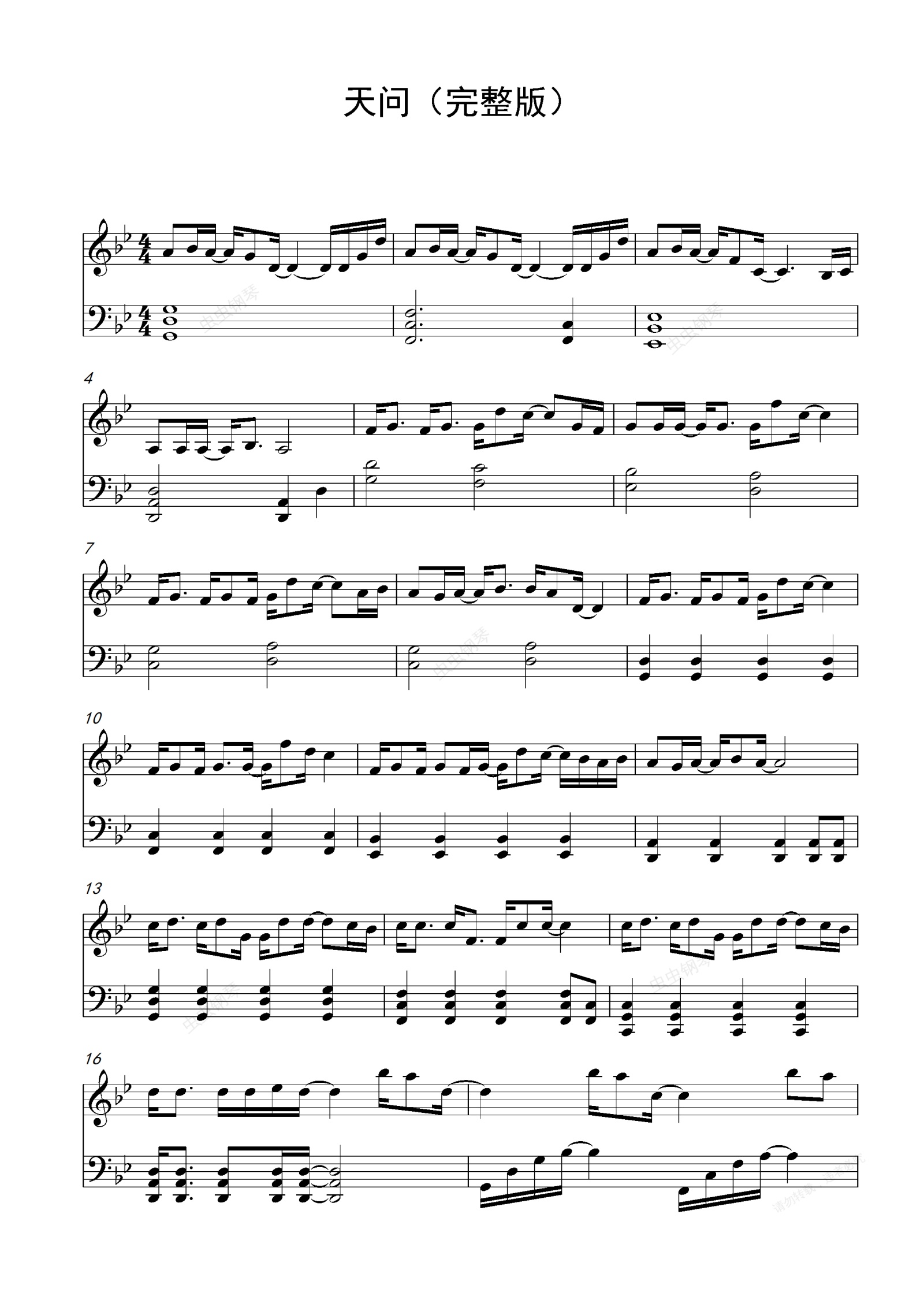 钢琴谱:天问-山河令-完整版-新手好听易学-bB-弹钢琴的余鱼编配-网红热歌
