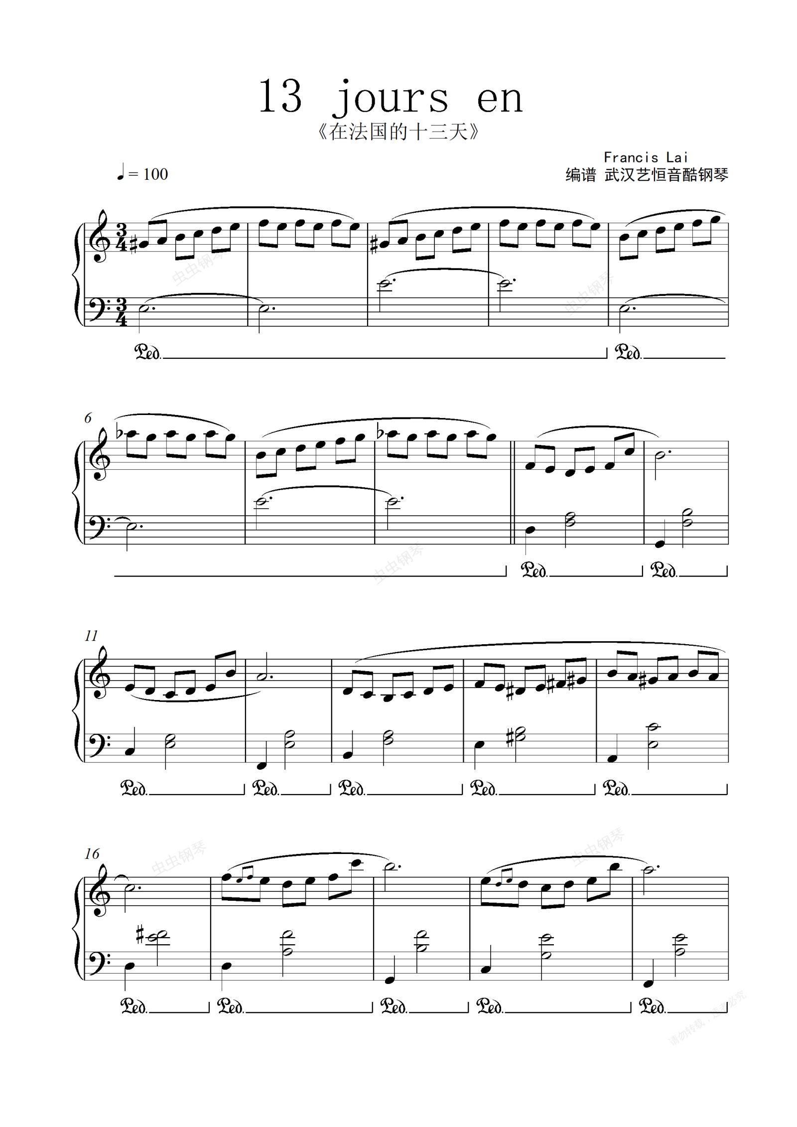 钢琴谱:《在法国的十三天/冬季恋歌》简单好听易上手