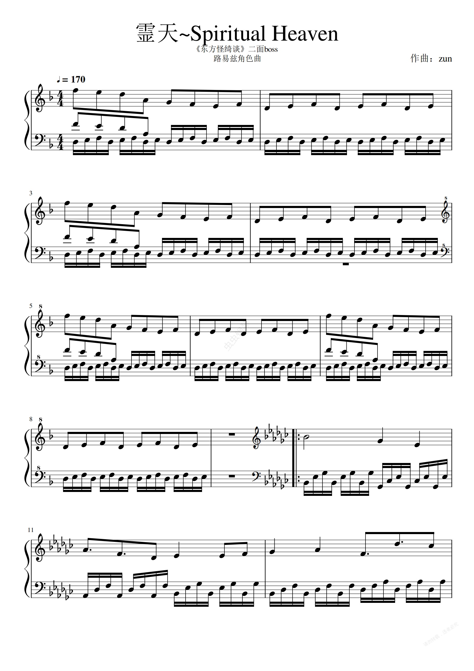 钢琴谱:【东方怪绮谈】霊天~Spiritual Heaven