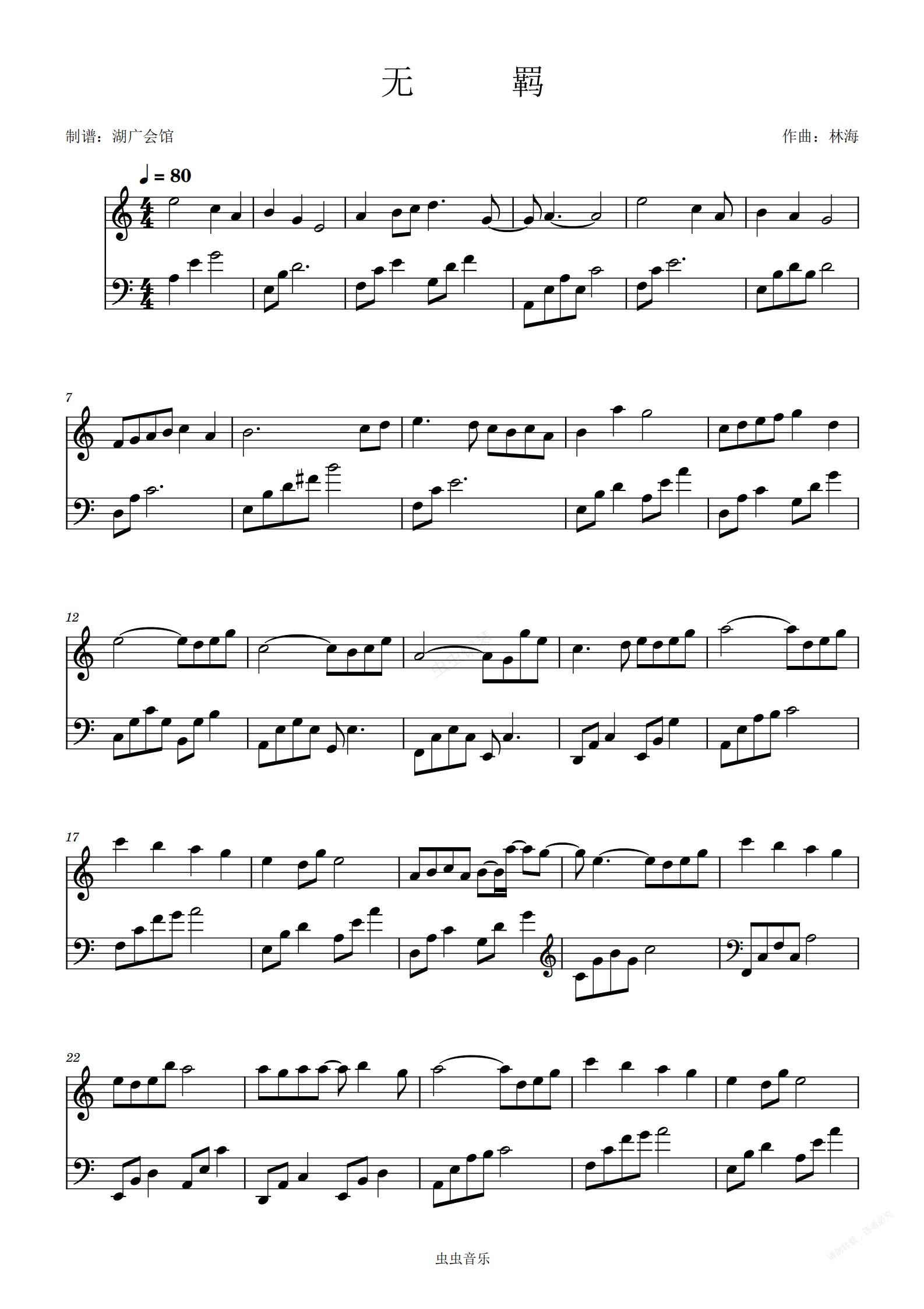 钢琴谱:无羁 C调简易 容易上手容易弹