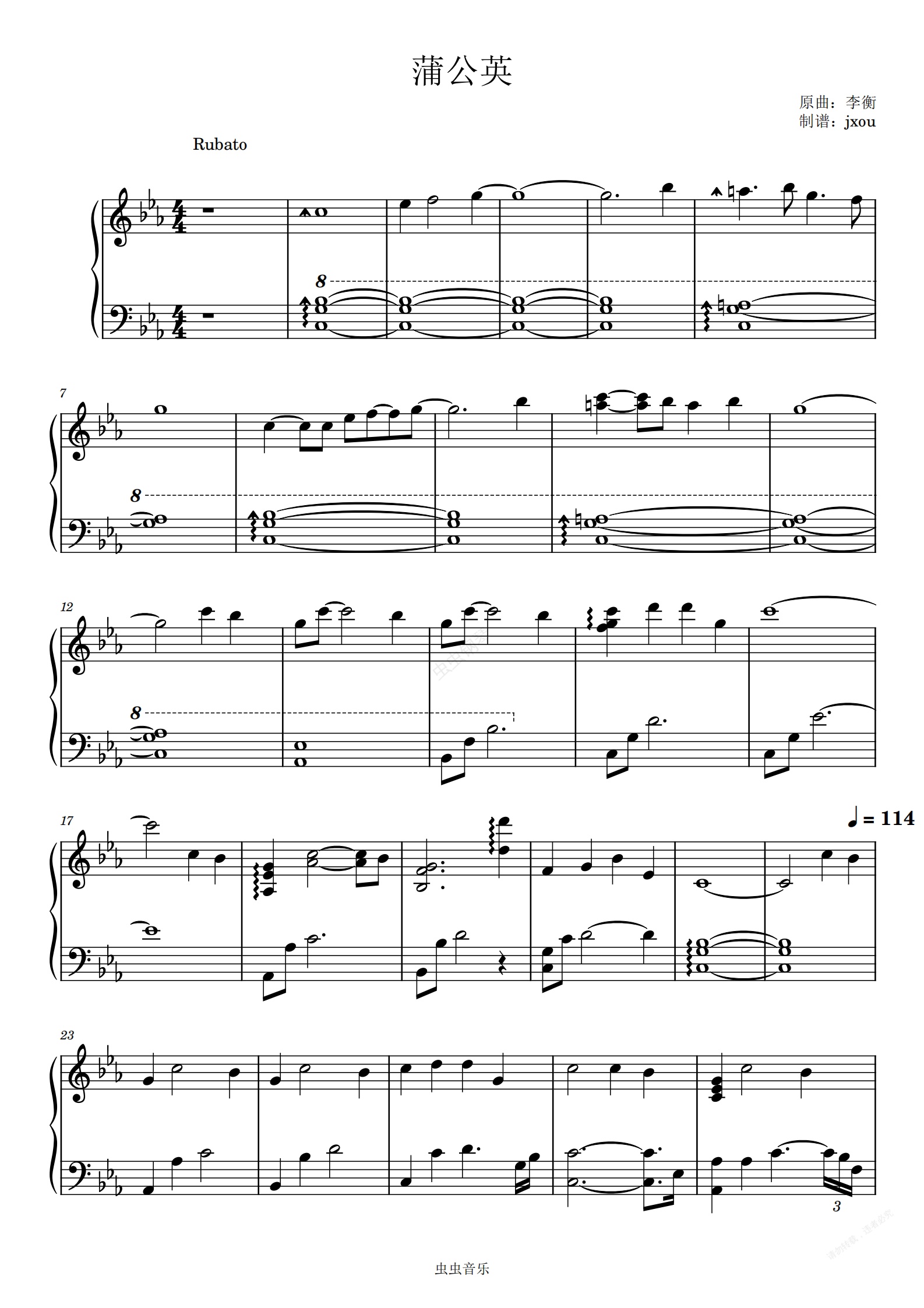 钢琴谱:蒲公英 原调网抑云风格改编版 我和我的家乡