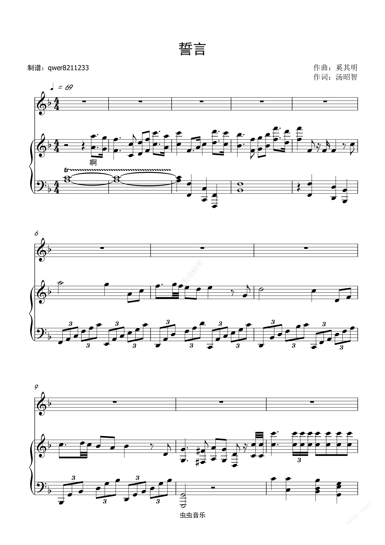 钢琴谱:誓言 - 廖昌永
