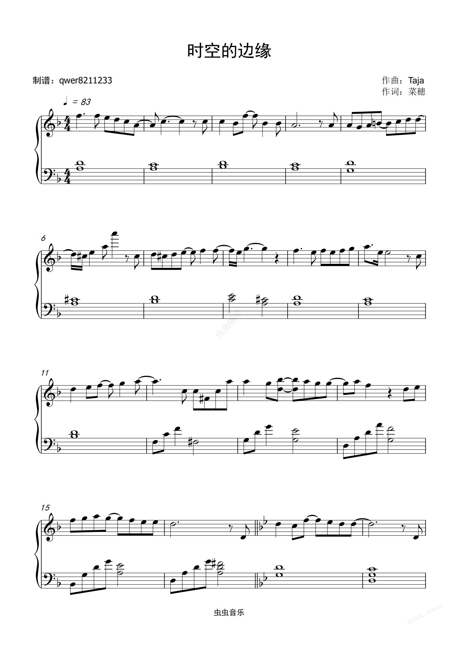 钢琴谱:時空のたもと (时空的边缘)