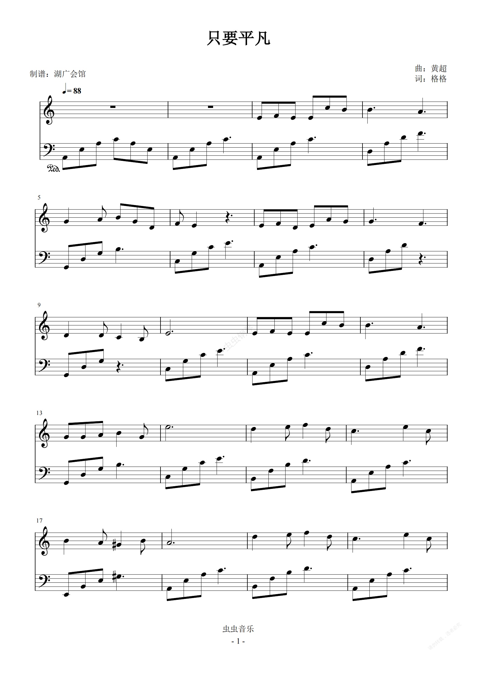 钢琴谱:只要平凡 C调简易 容易上手容易弹