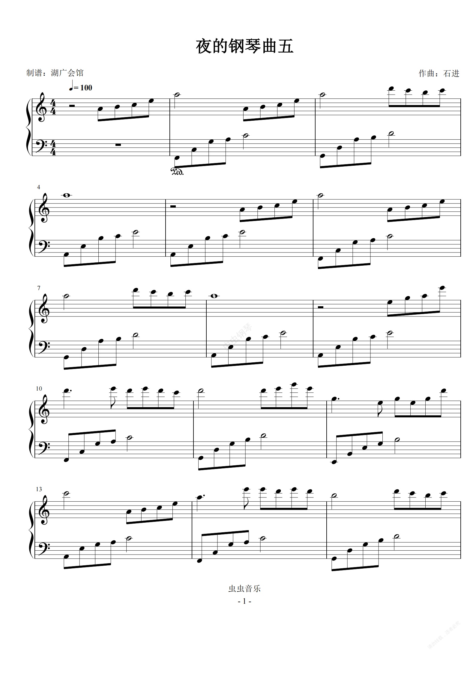 钢琴谱:夜的钢琴曲五 C调简易 容易上手容易弹