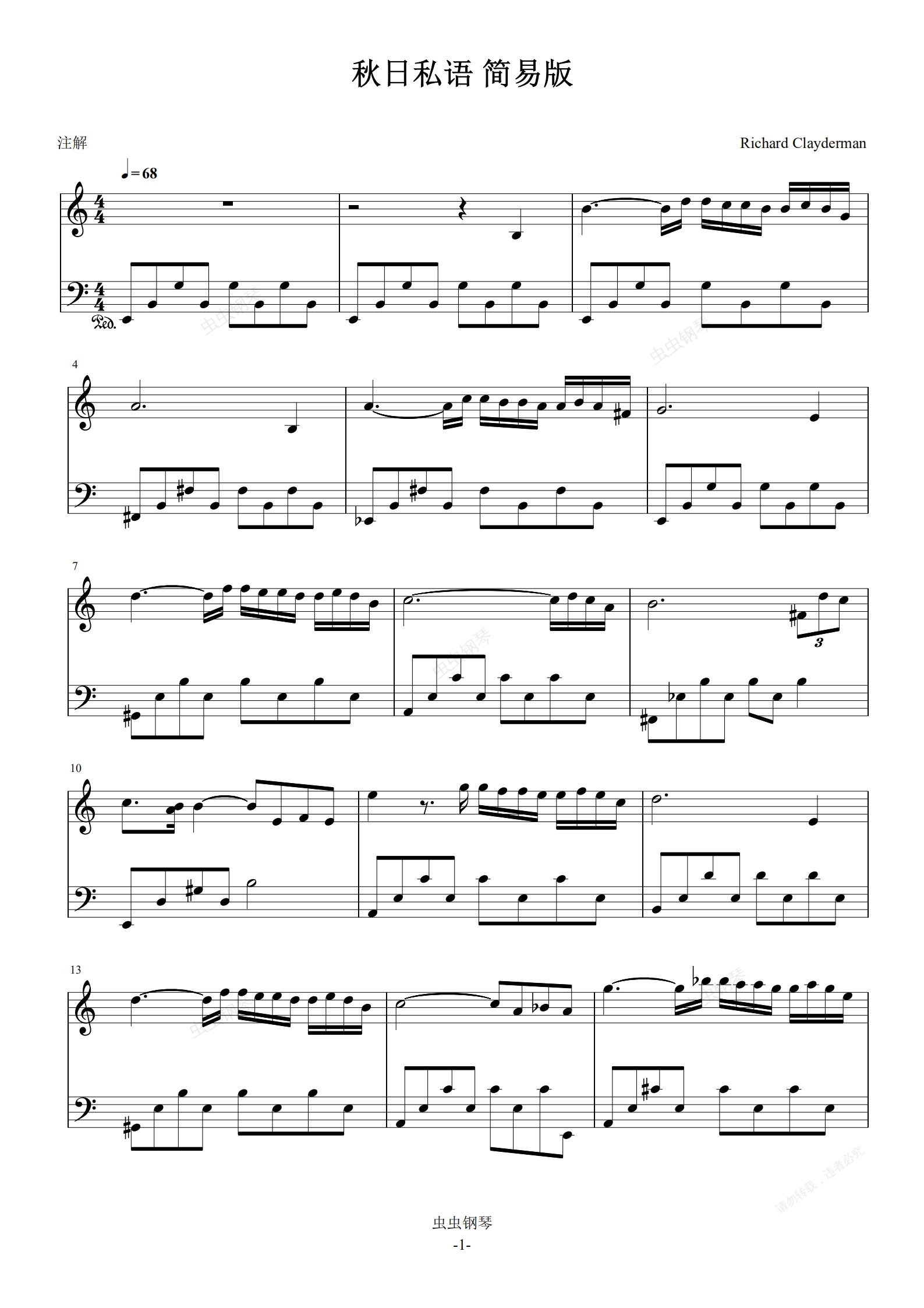 钢琴谱:秋日私语 C调简易 容易上手容易弹