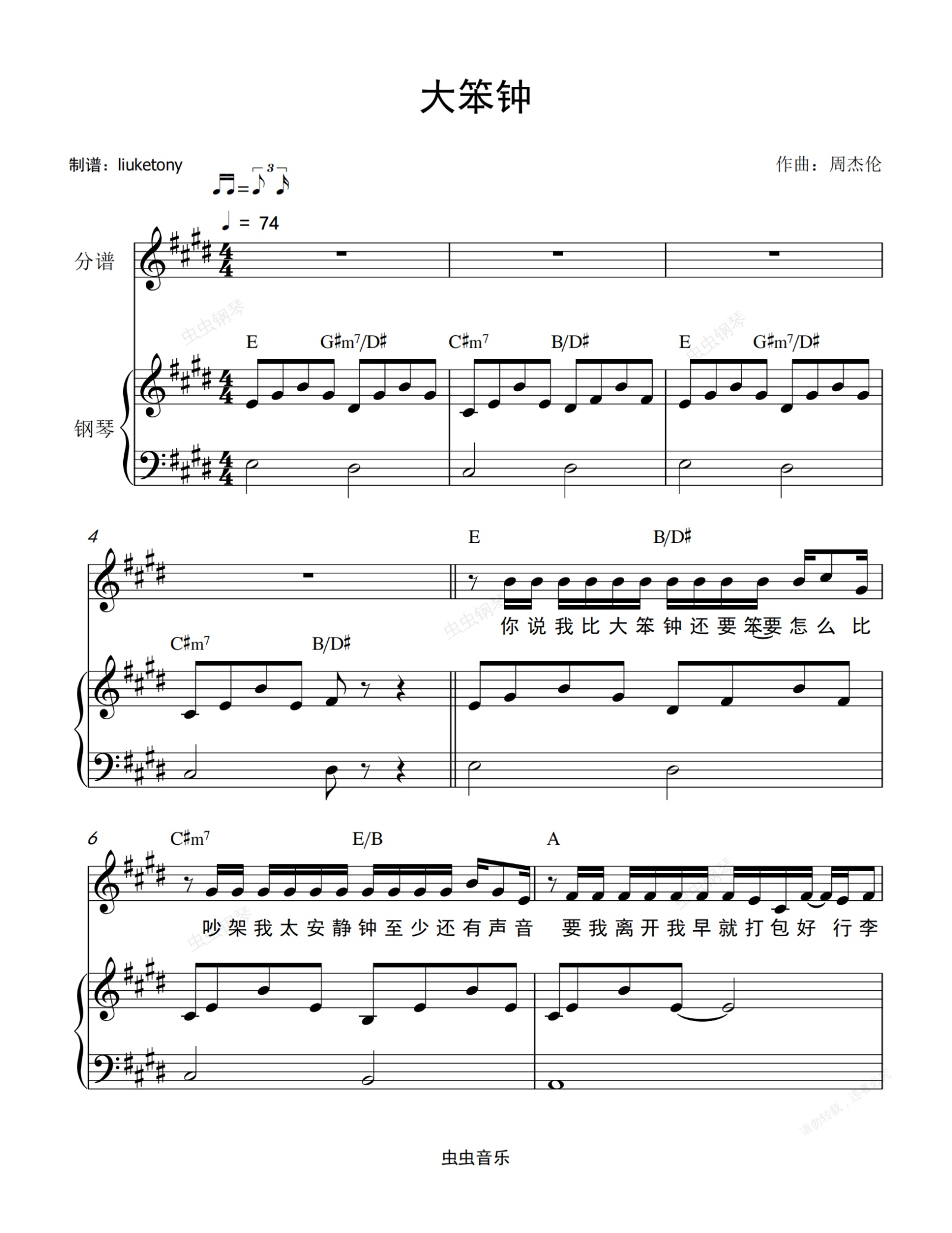 钢琴谱:大笨钟 - 钢琴伴奏版 原调