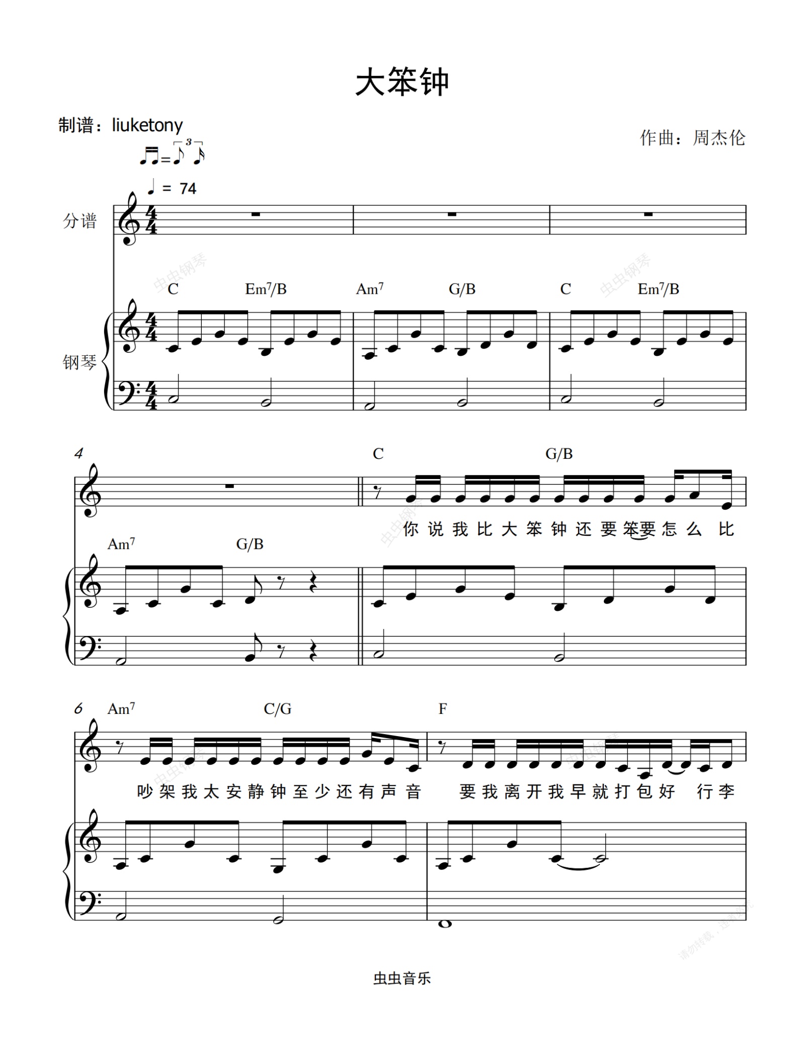 钢琴谱:大笨钟 - 钢琴伴奏版 C 调