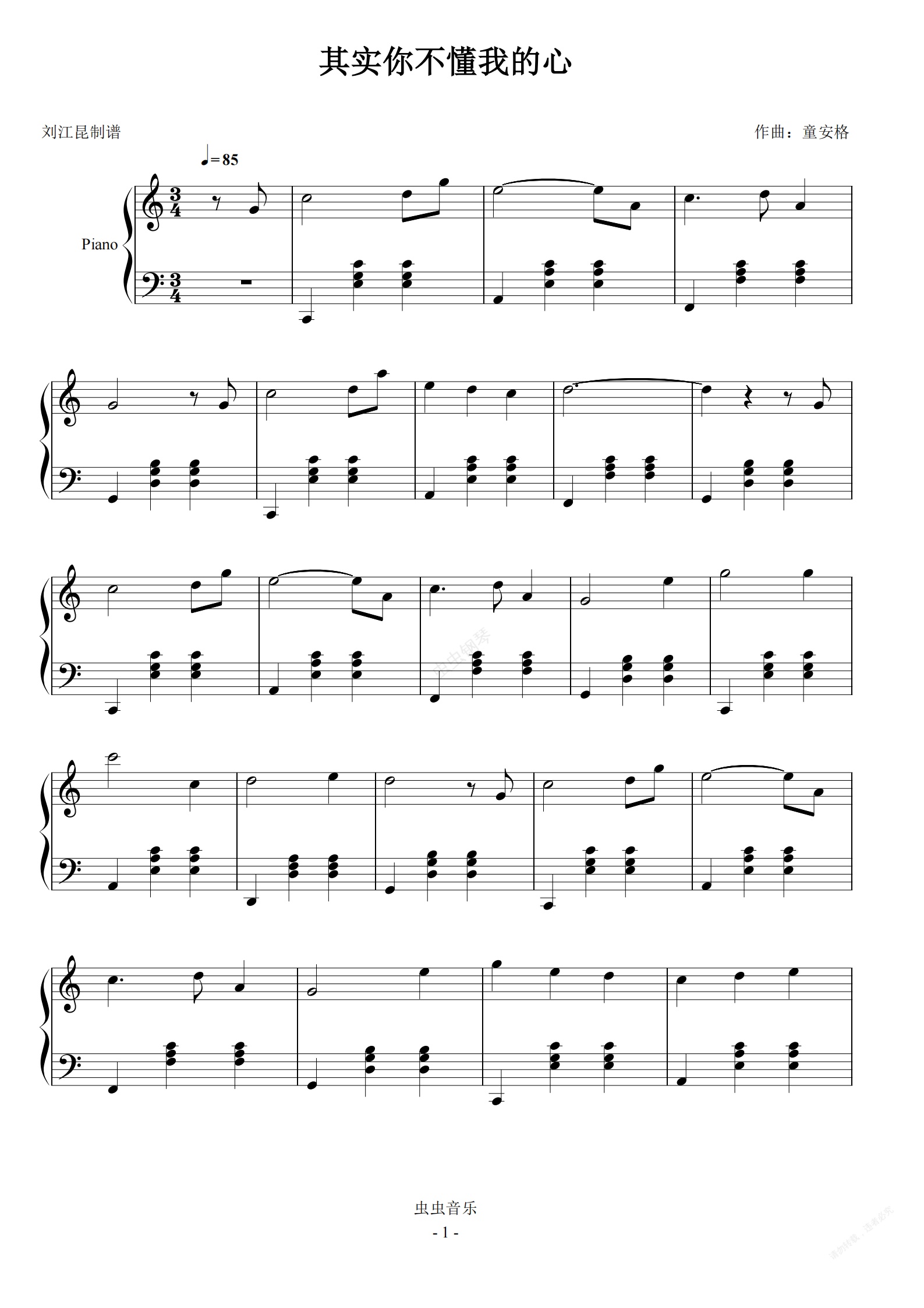 钢琴谱:其实你不懂我的心(成人钢琴教学版)