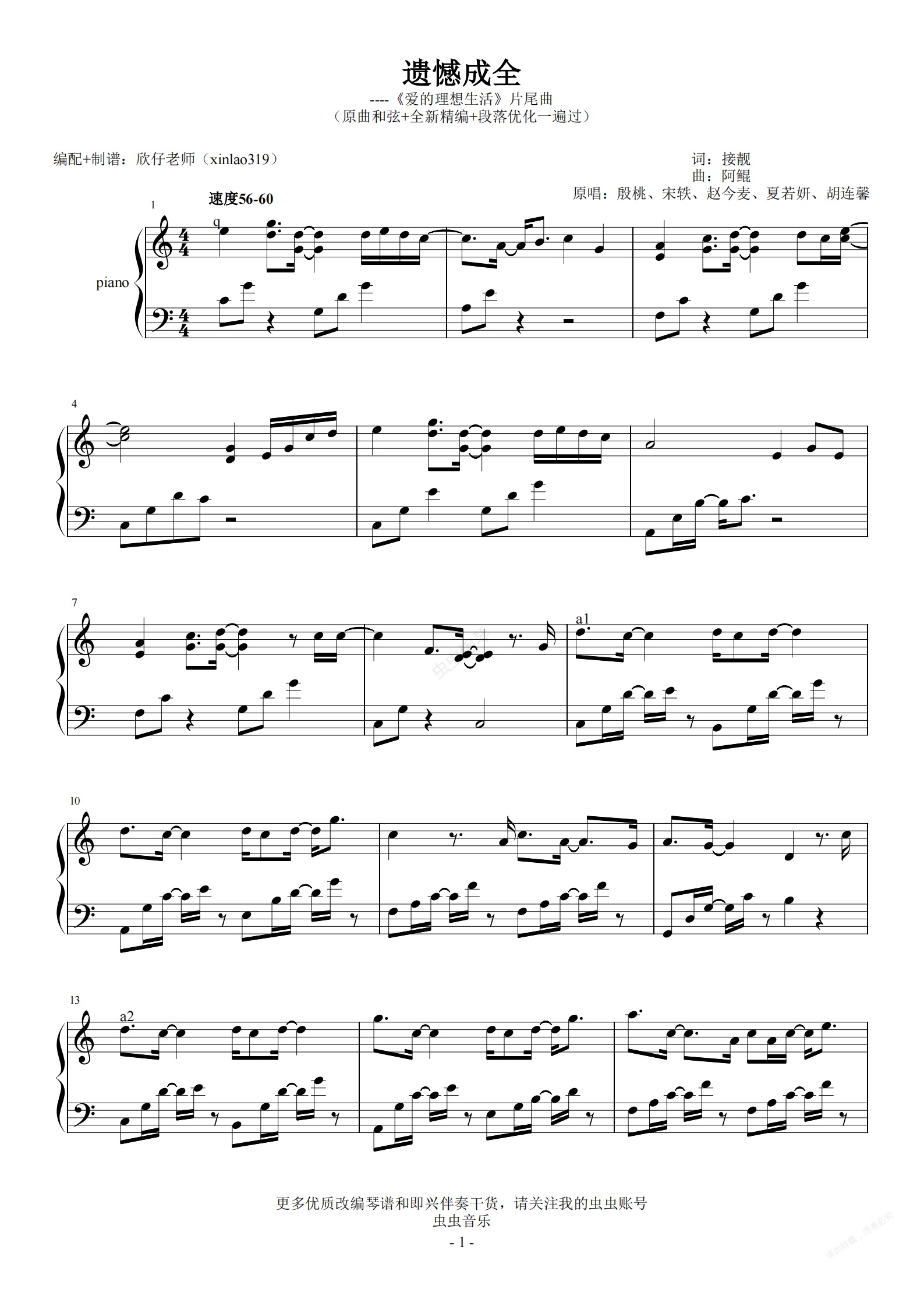 钢琴谱:C《遗憾成全》-《爱的理想生活》片尾曲(原曲和声+全新精编+段落优化一遍过)