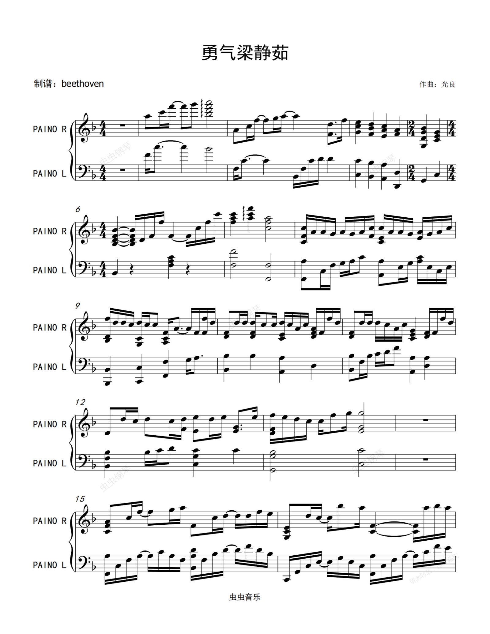 钢琴谱:勇气-梁静茹 钢琴独奏