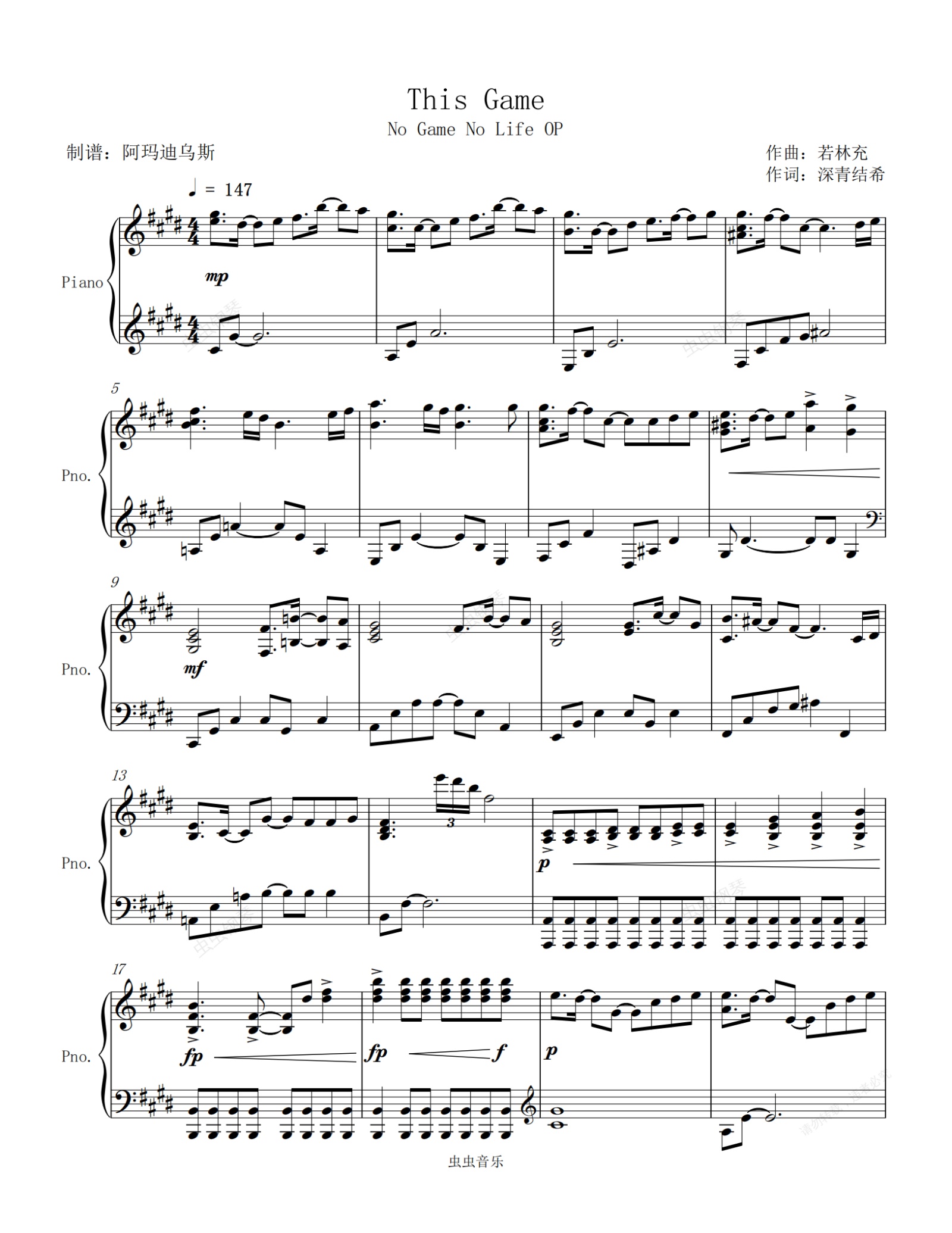 钢琴谱:游戏人生 OP < This Game > 原调高还原完整版本