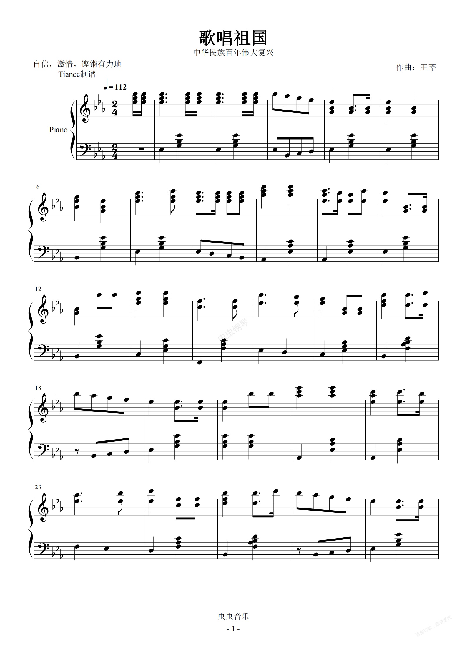 钢琴谱:《歌唱祖国》适合手小同学,849+难度