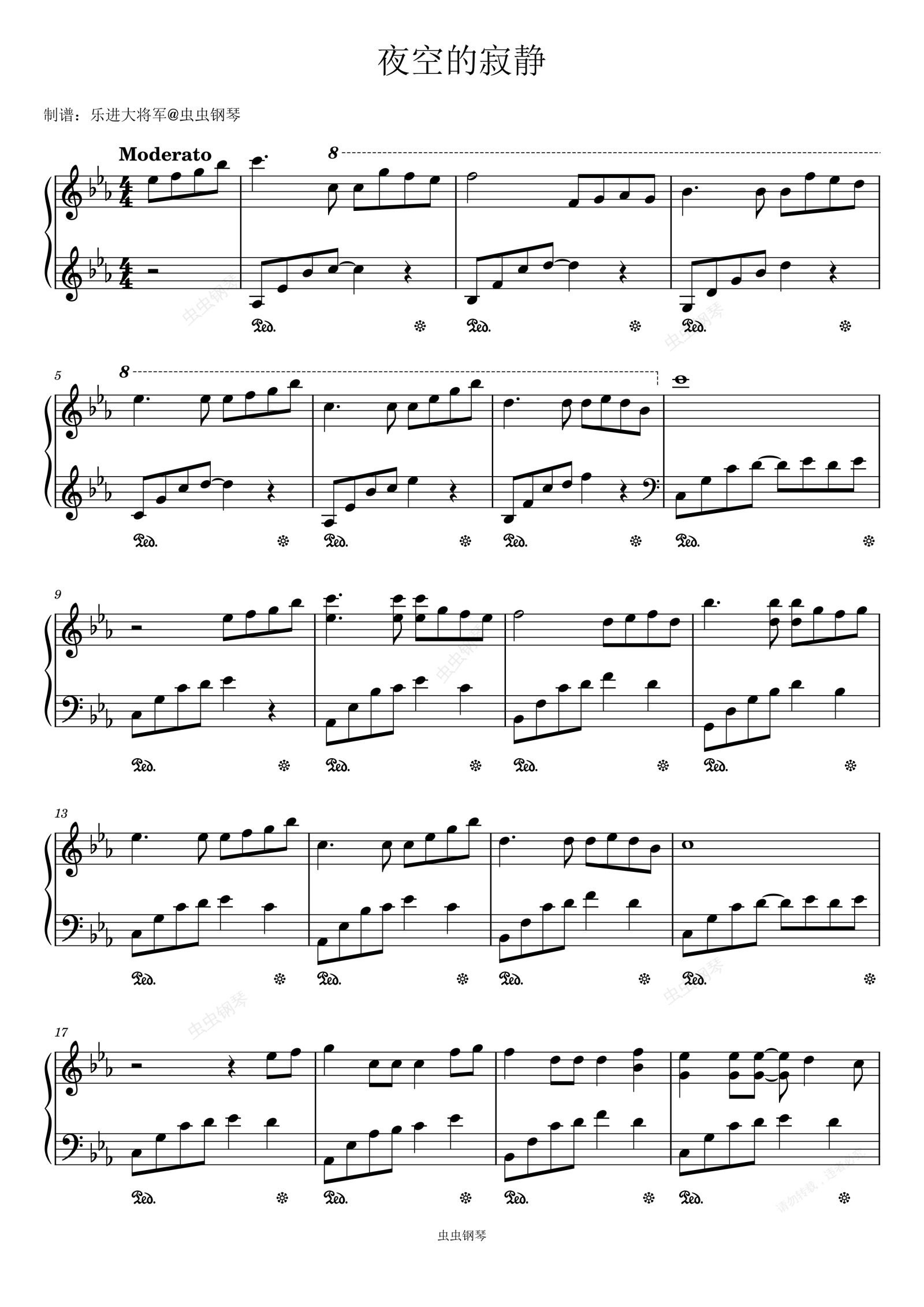 钢琴谱:《夜空的寂静》唯美演奏版