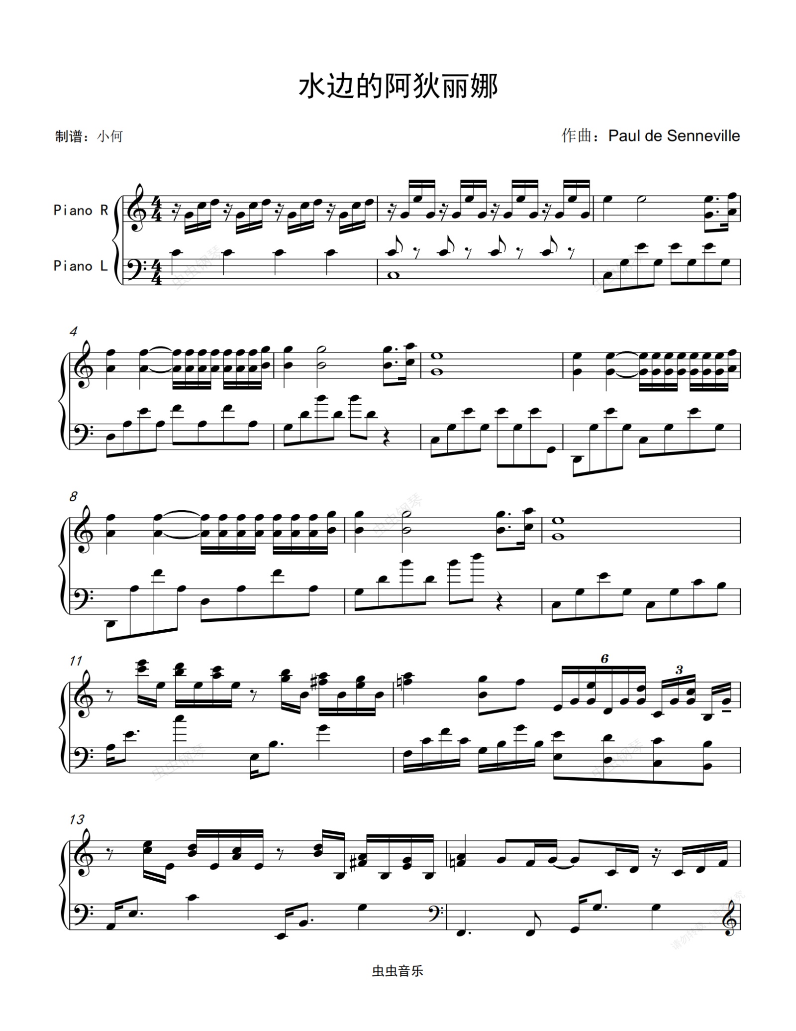 钢琴谱:水边的阿狄丽娜-理查德.克莱德曼