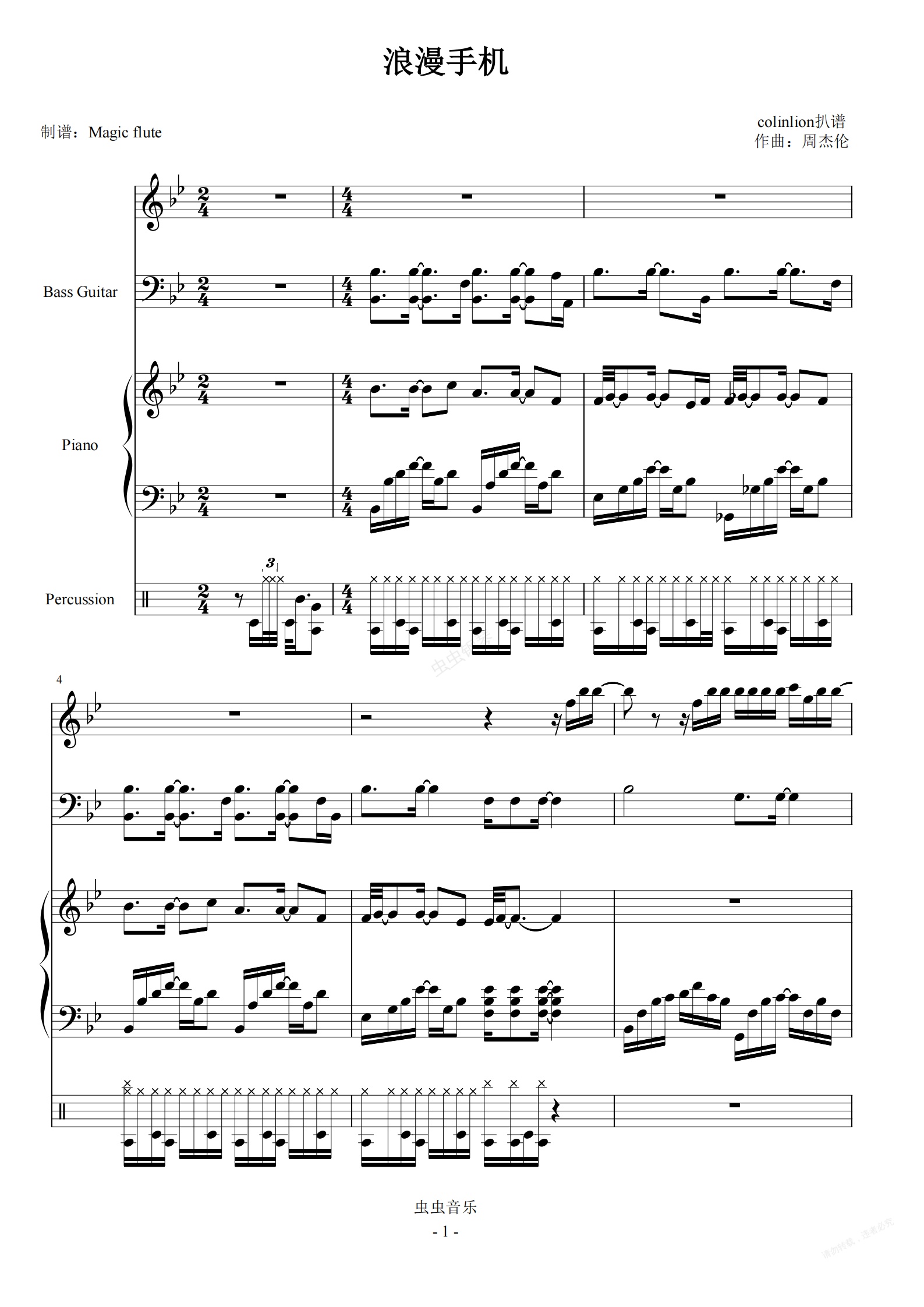 钢琴谱:浪漫手机(钢琴与乐队)-周杰伦