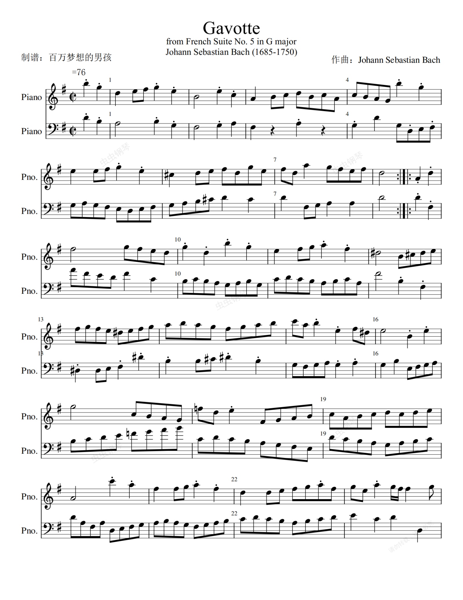 钢琴谱:Bachs_Gavotte_from_French_Suite_No._5