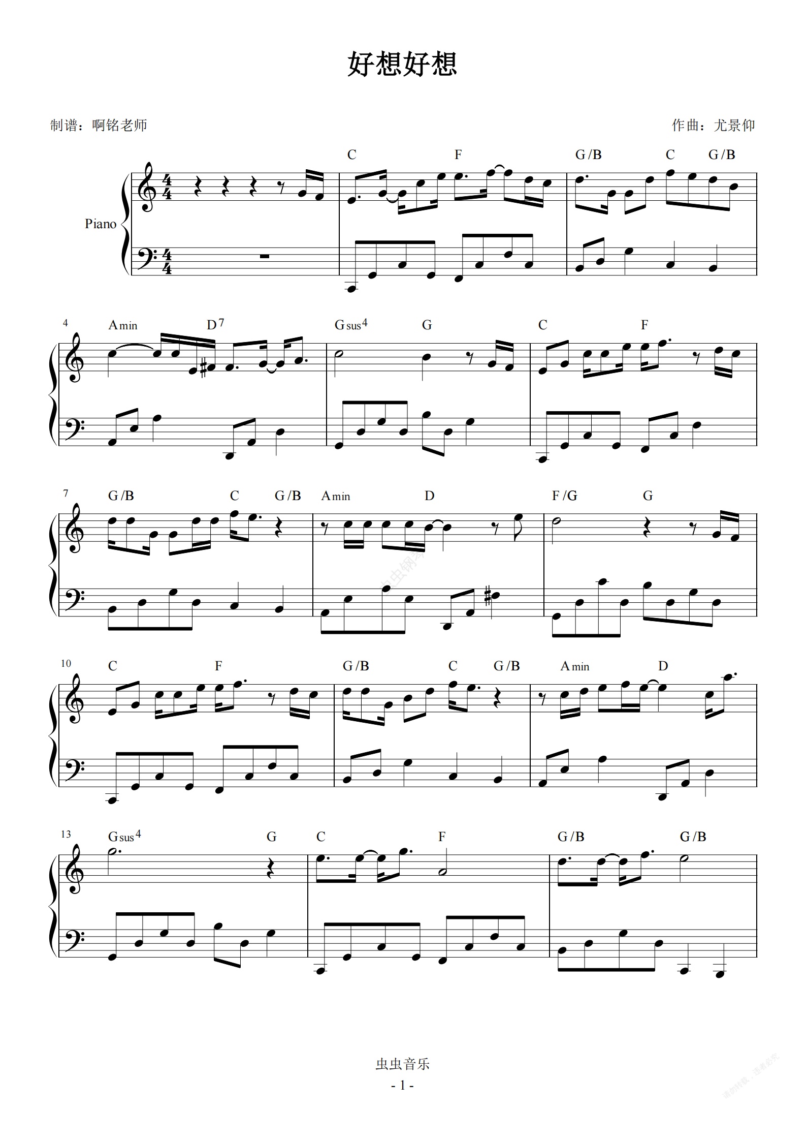 钢琴谱:好想好想 情深深雨蒙蒙 怀旧