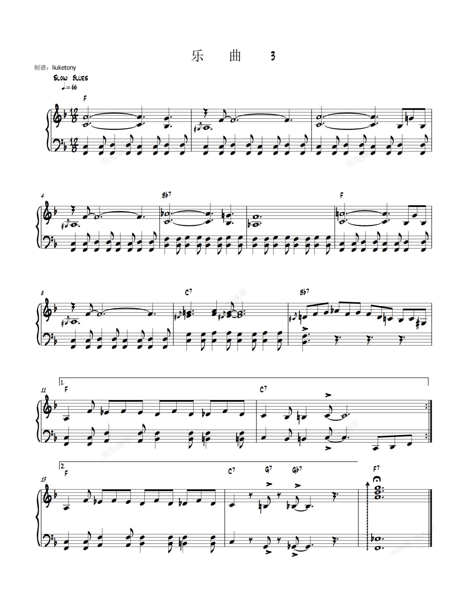 钢琴谱:中国音乐学院爵士钢琴考级 1级 乐曲3